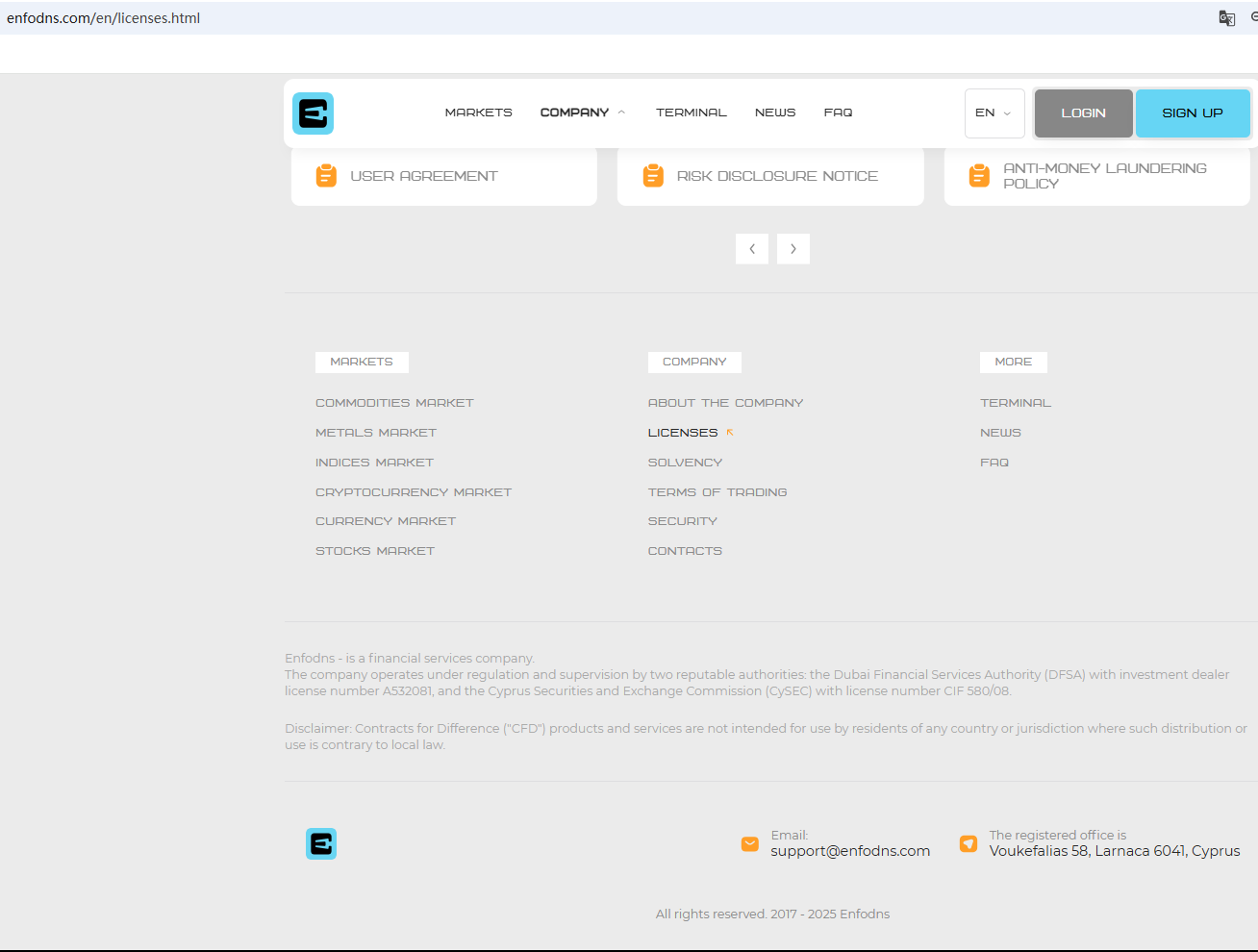 BrokersView found that the domain "https://enfodns.com/" is currently inaccessible. This is widely regarded as a significant red flag, as the suspension of a broker's website often points to underlying regulatory or operational issues.