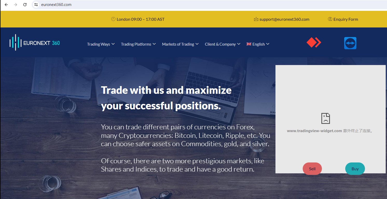 Euro Next 360 claims to be a trading broker that it has branches in London, Zurich, and Singapore, offering wide range of financial services, including Forex, Cryptocurrency, Index and more instruments in global markets. However, it has not been authorized or licensed by any financial regulatory authority. A company that offers financial services must have a financial license in the country where it is located.Upon investigation, we found that Euro Next 360 is not regulated by the United Kingdom Financial Conduct Authority (FCA), the Swiss Financial Market Supervisory Authority (FINMA), the Monetary Authority of Singapore (MAS). The truth is that Euro Next 360 is not regulated by any regulators. Letting it hold or control investors'money is unsafe, and the money can not be protected by any laws.Euro Next 360 is a scam.