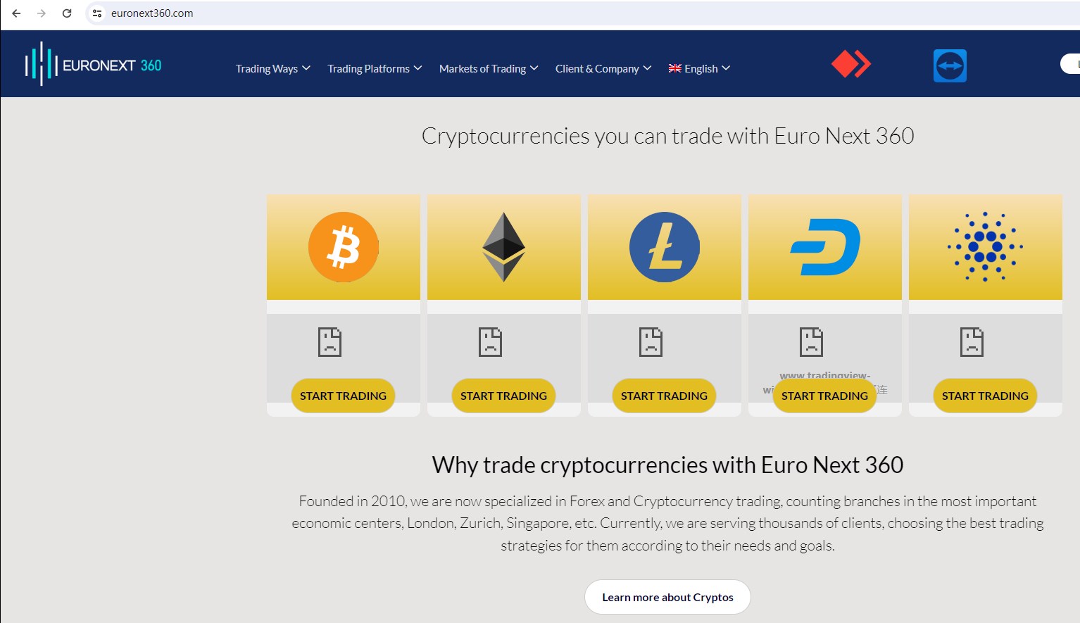 Euro Next 360 claims to be a trading broker that it has branches in London, Zurich, and Singapore, offering wide range of financial services, including Forex, Cryptocurrency, Index and more instruments in global markets. However, it has not been authorized or licensed by any financial regulatory authority. A company that offers financial services must have a financial license in the country where it is located.