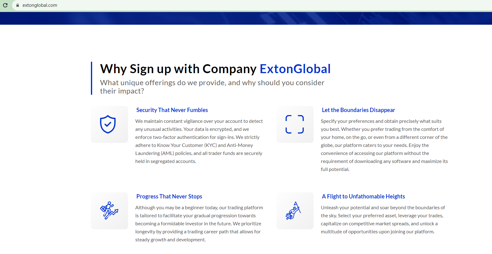 ExtonGlobal presents itself as a reliable trading platform, but our investigation suggests otherwise. The company fails to disclose regulatory information, which is a significant indicator of a scam.
