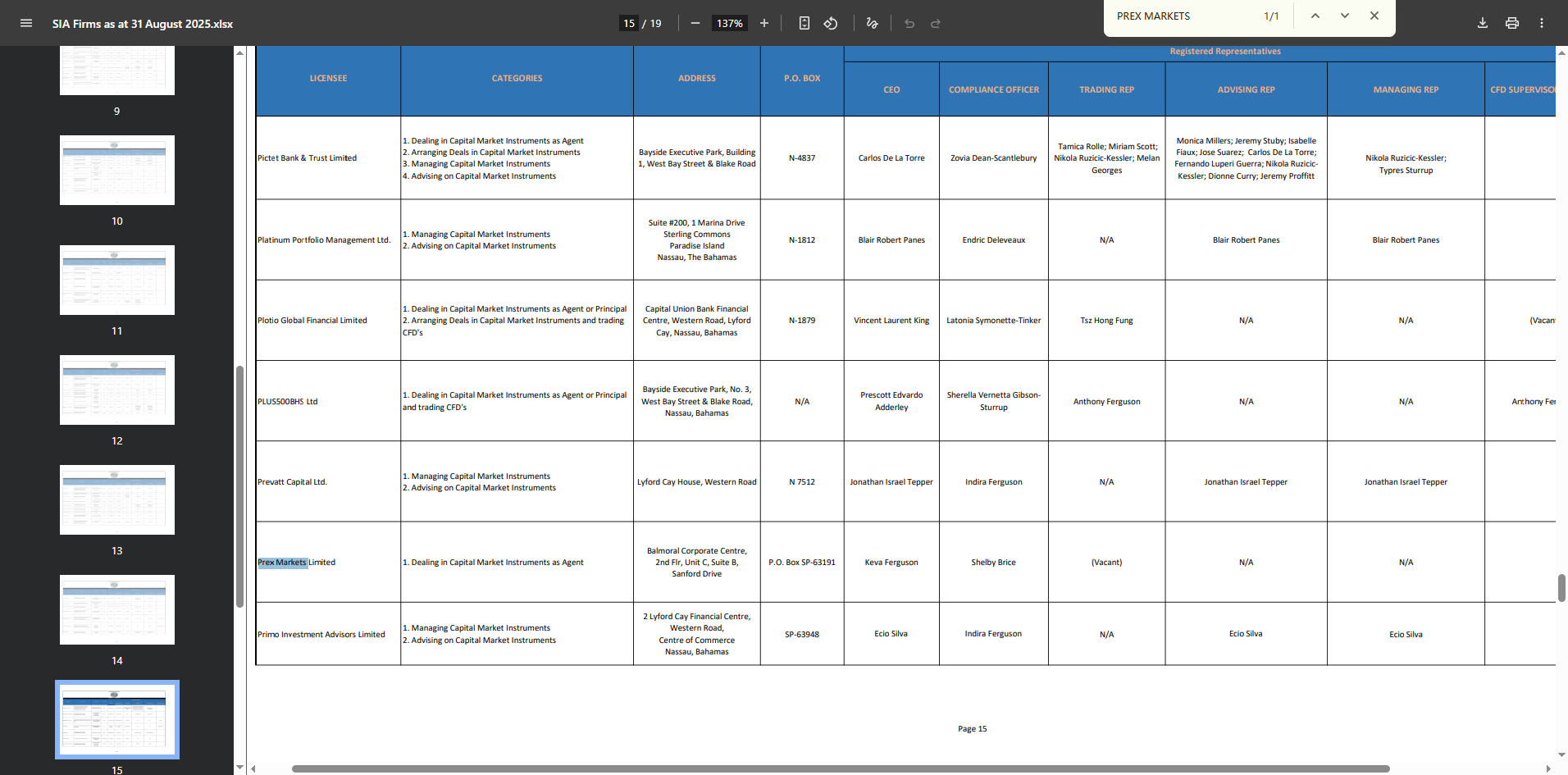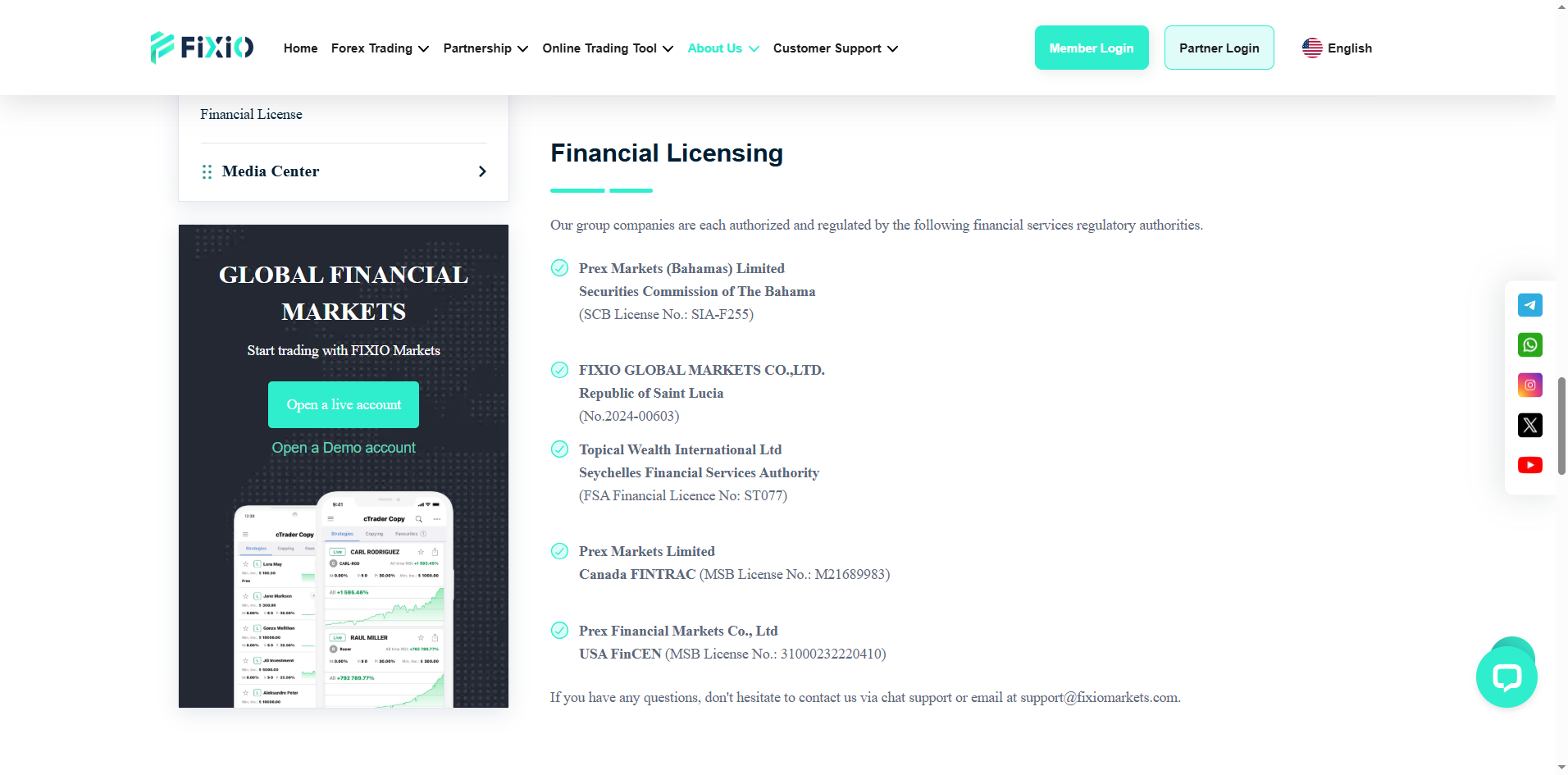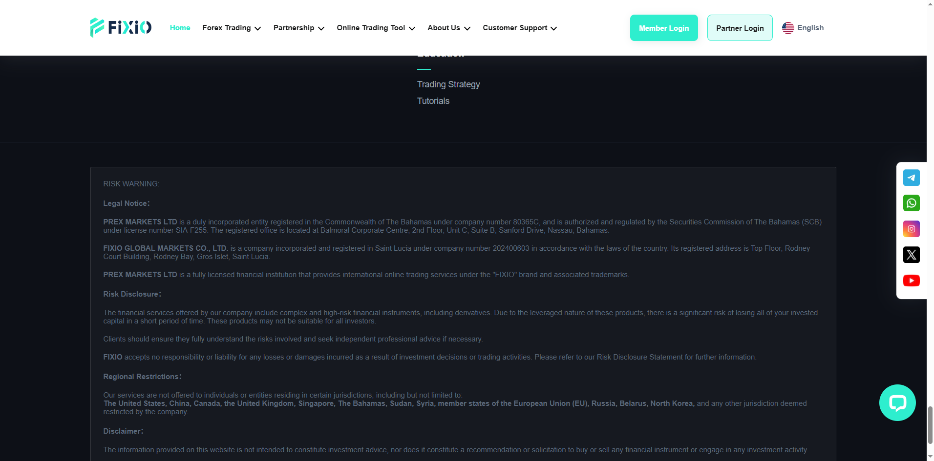 FIXIO claims to be operated by PREX MARKETS LTD, regulated by the Securities Commission of The Bahamas (SCB) under license SIA-F255. While PREX MARKETS LTD is indeed listed in SCB records, the regulator does not disclose or verify domain names or trading brands, and no official link to "FIXIO" exists, raising serious concerns about potential license misuse or identity impersonation.