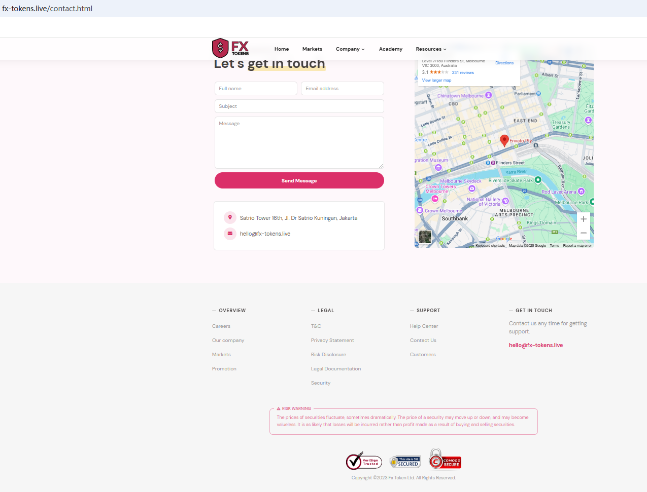 Based on the address published on its website, we queried the relevant regulatory authorities separately, but did not find any matching information in Australia Securities & Investment Commission (ASIC) and Commodity Futures Trading Regulatory Agency (BAPPEBTI).