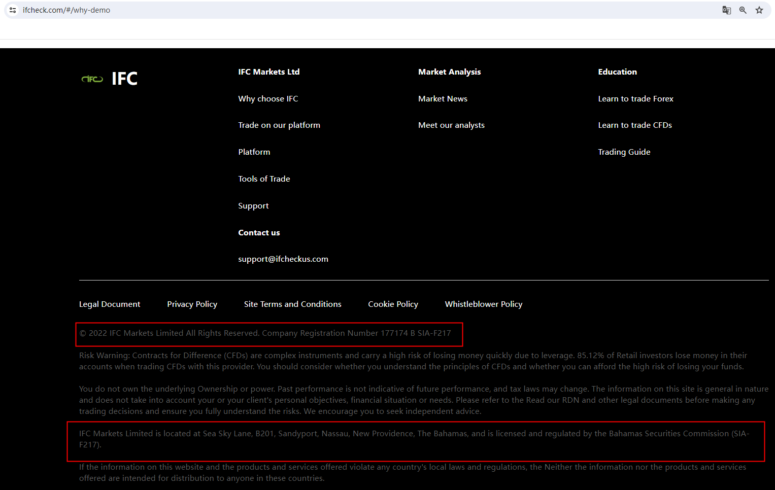 Despite its attempts to build a reputation through exaggerated language, Fake IFC Markets is an unregulated broker. BrokersView has noticed that Fake IFC Markets shares similar registration information, regulatory statements, and company profiles with the suspicious broker, SCEXS (https://www.brokersview.com/brokers/scexs). In addition, it claims regulated by the British Virgin Islands Financial Services Commission (BVI FSC). Upon investigation, no matching information was found in the BVI FSC. It is worth that it claims established in 2010, and after investigation, we found that it was established in 2014. This suggests that Fake IFC Markets is likely fraudulent as well.The most compelling evidence comes when the Securities Commission of the Bahamas (SCB) adds Fake IFC Markets to its warning list, refuting the broker's false claims of being regulated by them.In essence, Fake IFC Markets is not regulated by any governing body. Entrusting it with investors' funds is highly risky, as there are no legal protections in place to safeguard the funds.Fake IFC Markets appears to be a scam.