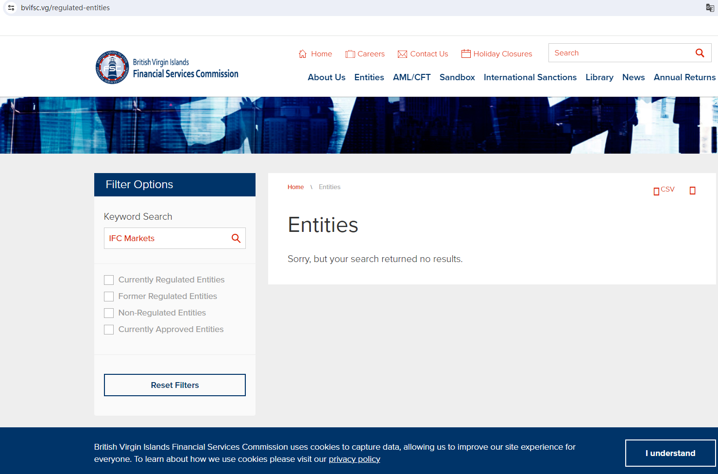 Despite its attempts to build a reputation through exaggerated language, Fake IFC Markets is an unregulated broker. BrokersView has noticed that Fake IFC Markets shares similar registration information, regulatory statements, and company profiles with the suspicious broker, SCEXS (https://www.brokersview.com/brokers/scexs). In addition, it claims regulated by the British Virgin Islands Financial Services Commission (BVI FSC). Upon investigation, no matching information was found in the BVI FSC. It is worth that it claims established in 2010, and after investigation, we found that it was established in 2014. This suggests that Fake IFC Markets is likely fraudulent as well.