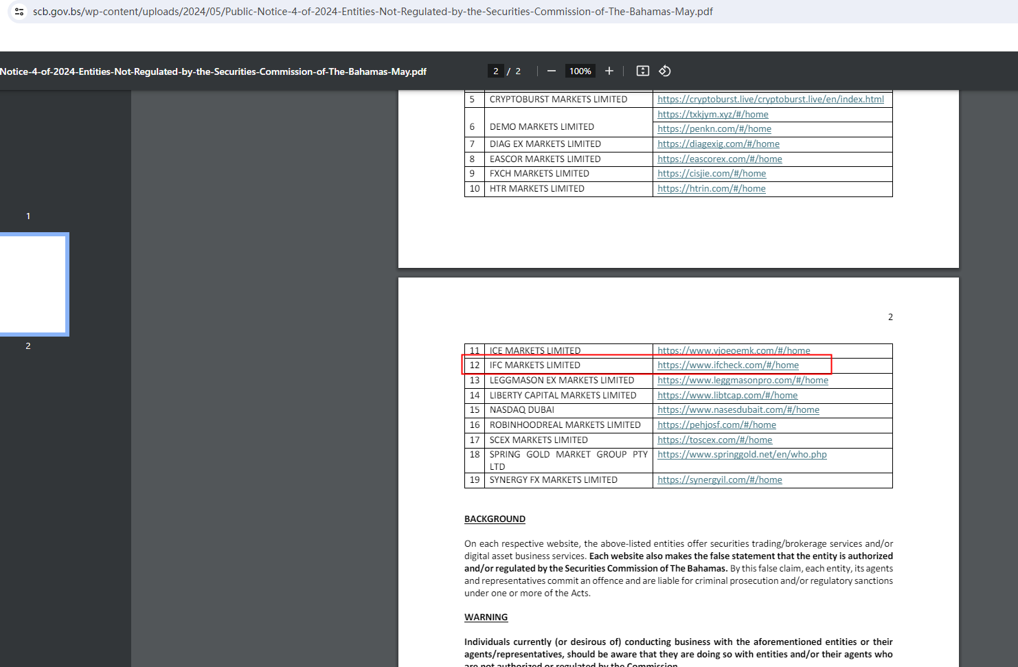 The most compelling evidence comes when the Securities Commission of the Bahamas (SCB) adds Fake IFC Markets to its warning list, refuting the broker's false claims of being regulated by them.