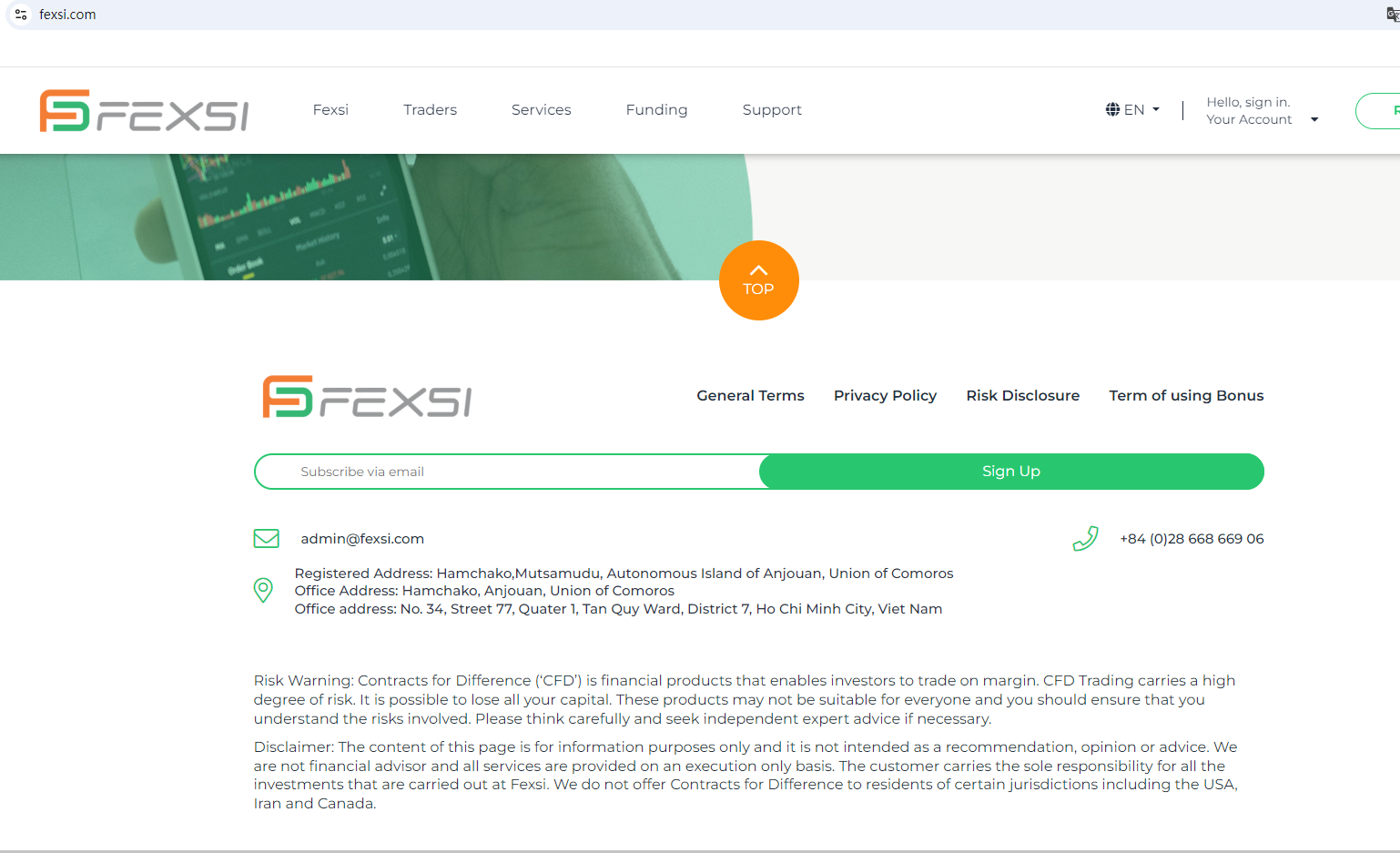 According to its website, it claims to be registered in the Comoros. Upon investigation, no matching information was found in the MWALI INTERNATIONAL SERVICES AUTHORITY (MISA). Therefore, Fexsi is clearly a scam. Therefore, Fexsi is clearly a scam.