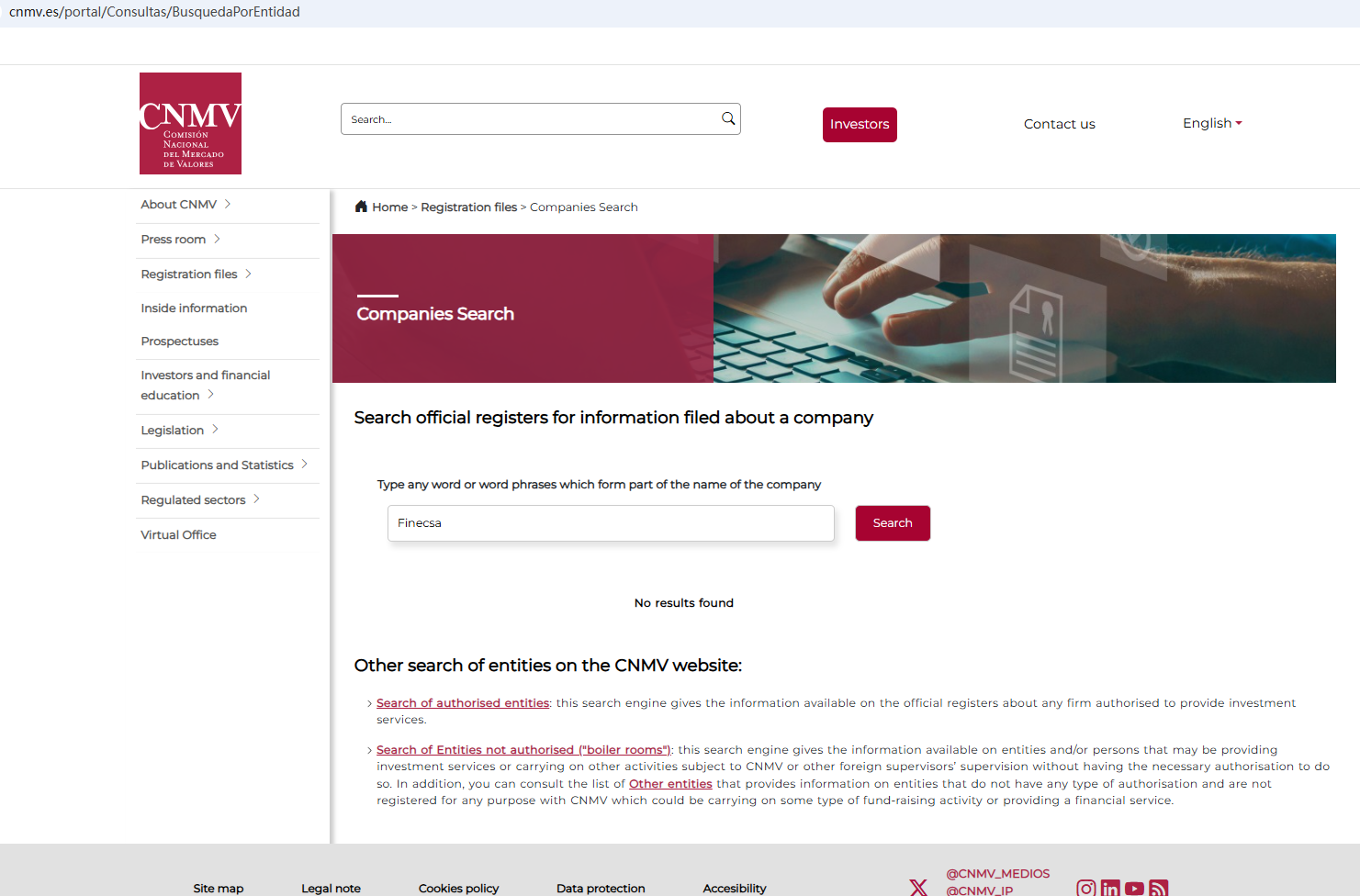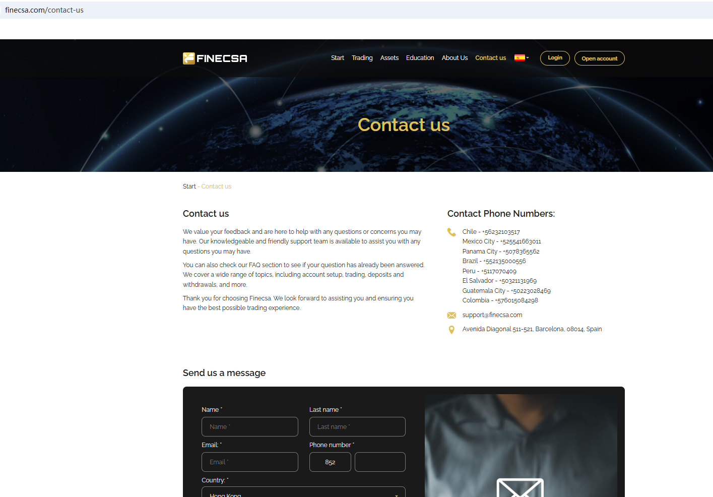According to its website, it is located in Spanish. Upon investigation, no matching information was found in the National Securities Market Commission (CNMV). In essence, Finecsa is not regulated by any governing body. Entrusting it with investors' funds is highly risky, as there are no legal protections in place to safeguard the funds. Finecsa appears to be a scam.