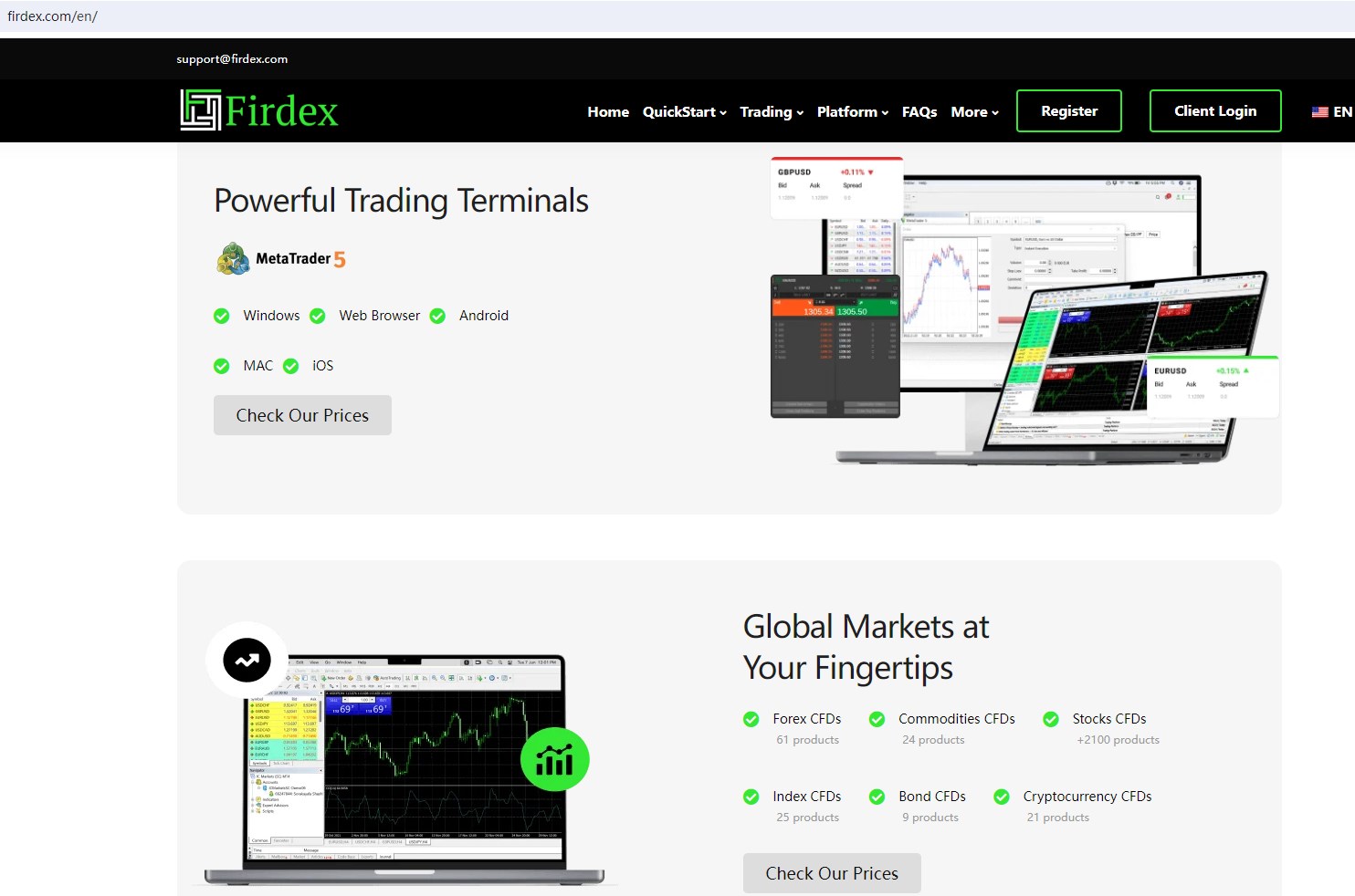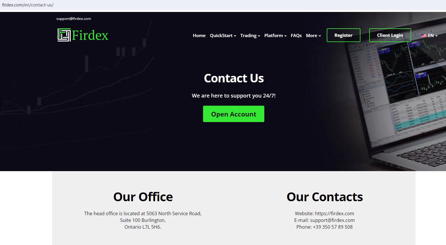 Firdex claims to be a forex CFD provider located in Canada, offering wide range of financial services, including Forex, Futures, Bond, Commodities, Digital Currencies, Indices and more instruments in global markets. However, there is no detailed financial services licenses and other licensing certificates. A company that offers financial services must have financial license in the country where it is located.