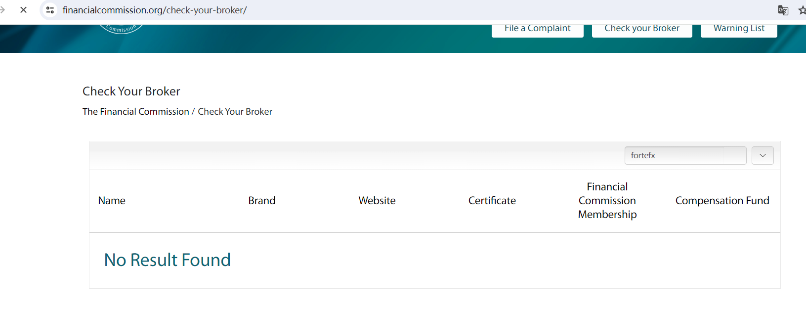 ForteFX asserts its membership with the Financial Commission, yet our investigation found no record of this company in the Commission's registry.