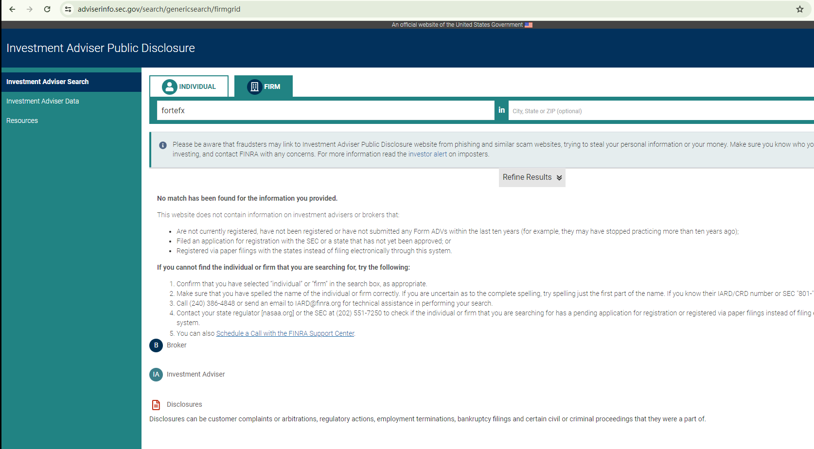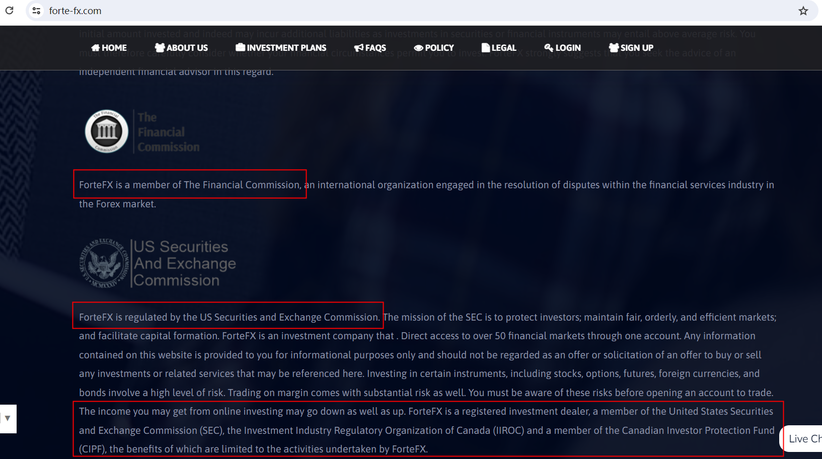 Moreover, despite ForteFX's declaration of being registered with both the U.S. Securities and Exchange Commission (SEC) and the Investment Industry Regulatory Organization of Canada (IIROC), our exhaustive search failed to corroborate these claims.