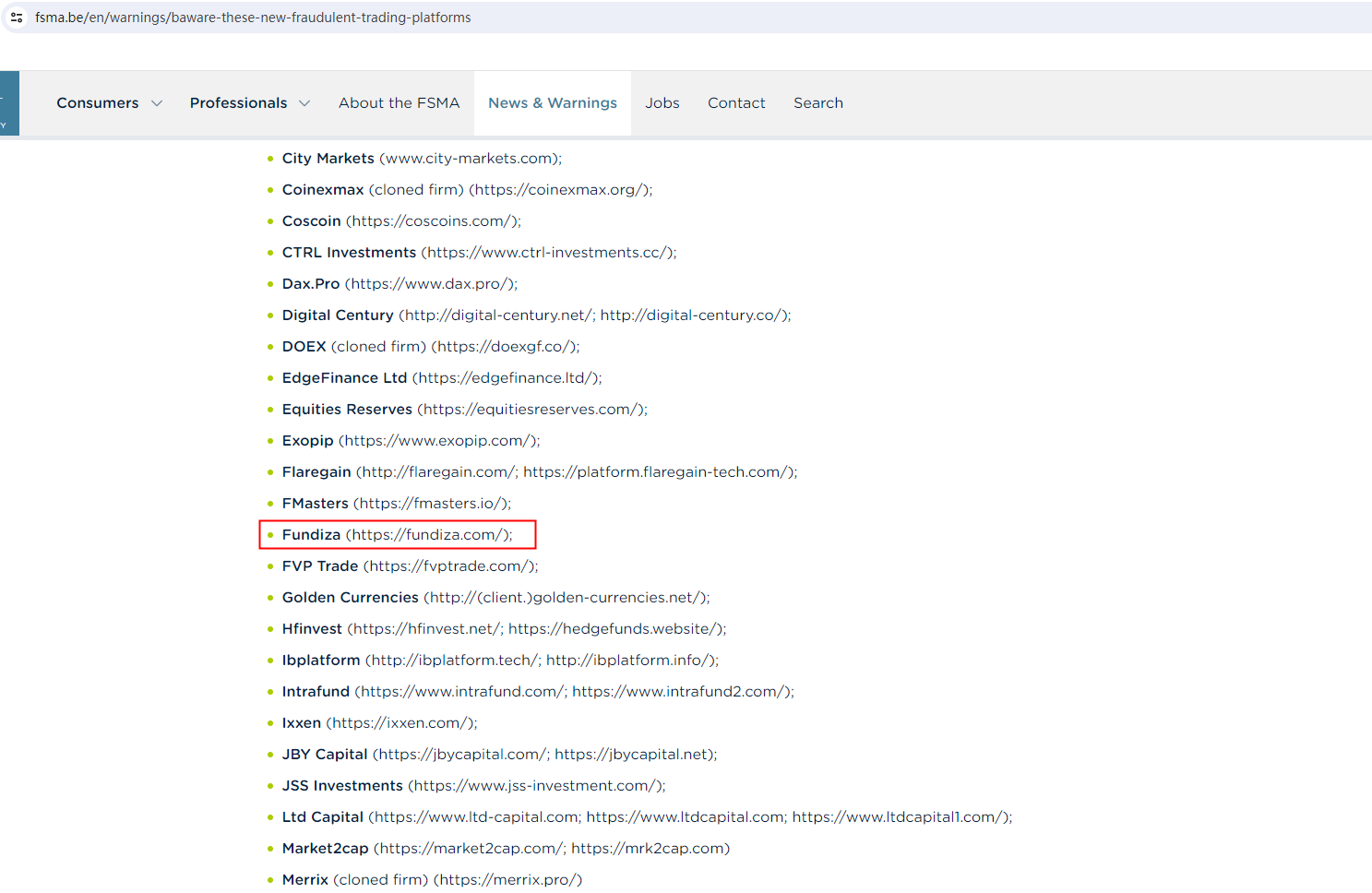 Moreover, the Italy Commissione Nazionale per le Società e la Borsa (CONSOB) issued a warning that Fundiza is not authorized to provide financial services in Italy.