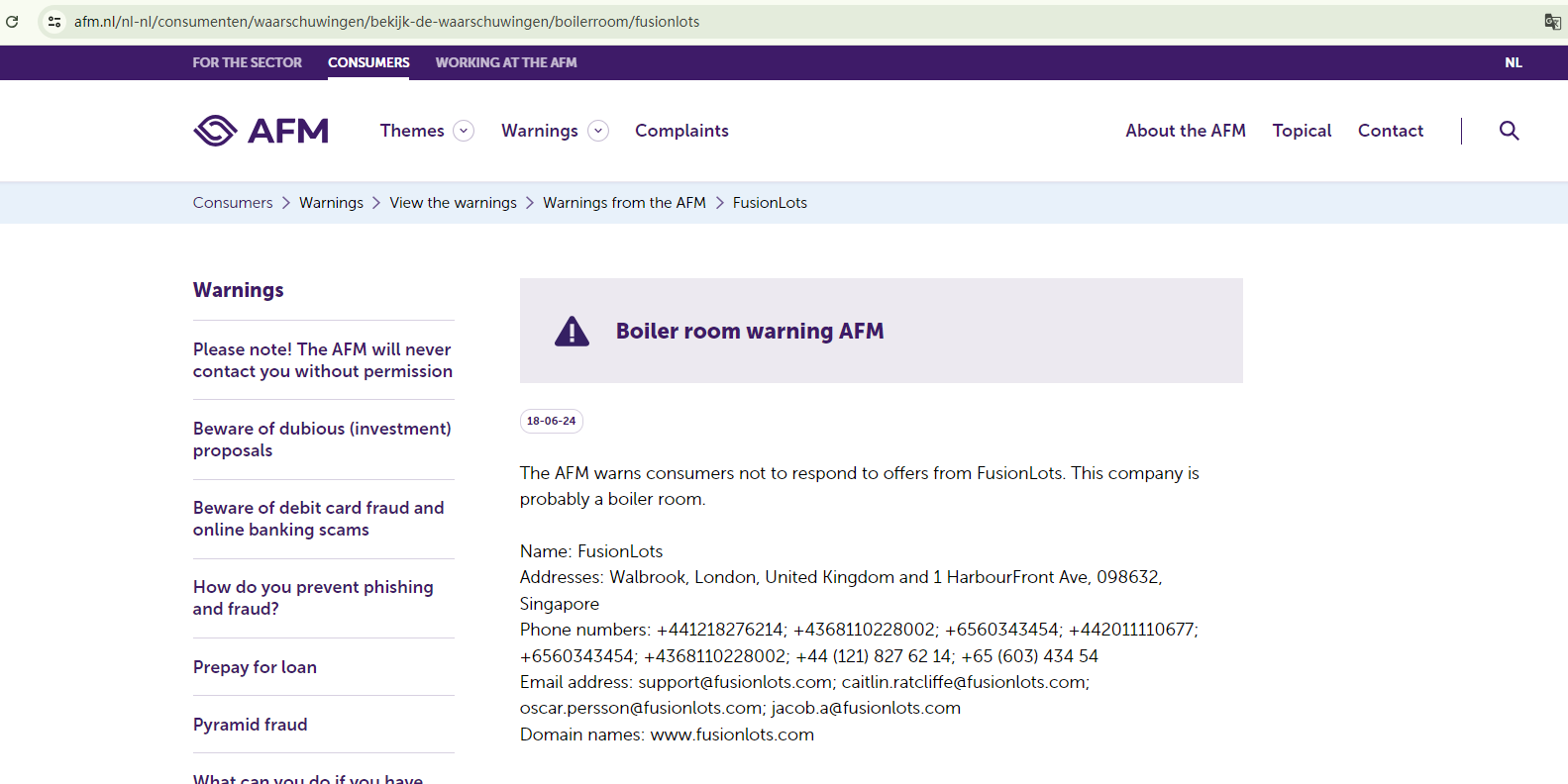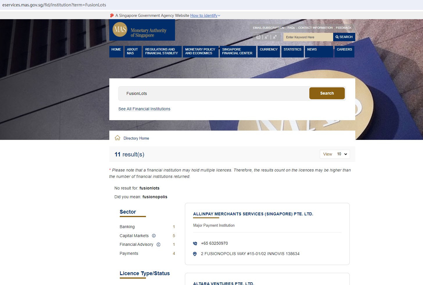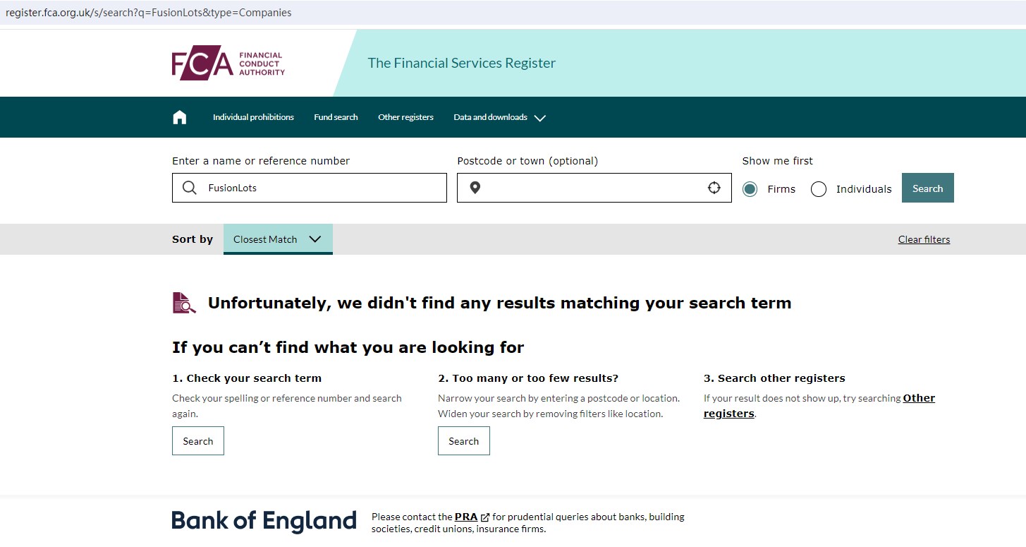 Upon investigation, we found that FusionLots is not regulated by the United Kingdom Financial Conduct Authority (FCA) and the Monetary Authority of Singapore (MAS).