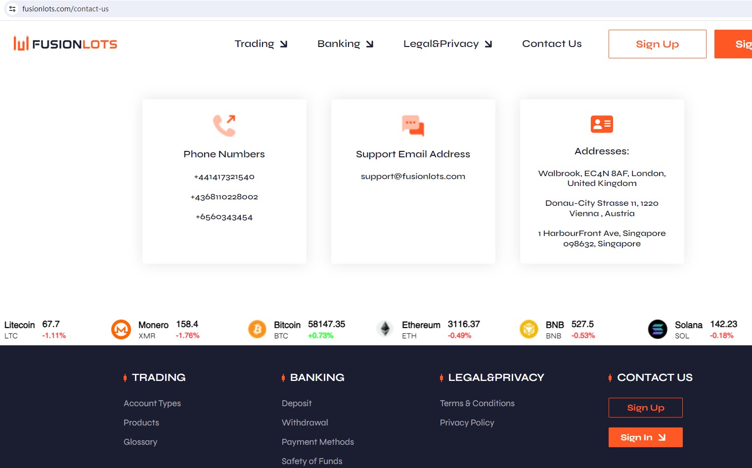 FusionLots claims to be a broker together with offices in the UK, Austria and Singapore, offering wide range of financial services, including Cryptocurrencies, Indexes, Stocks, Commodities, Currencies and more instruments in global markets. But there is no detailed financial services licenses and other licensing certificates. A company that offers financial services must have financial license in the country where it is located.