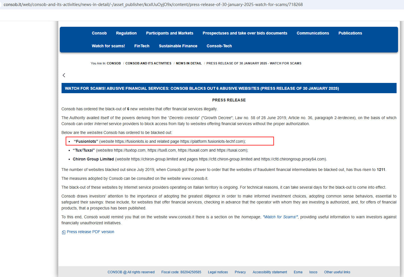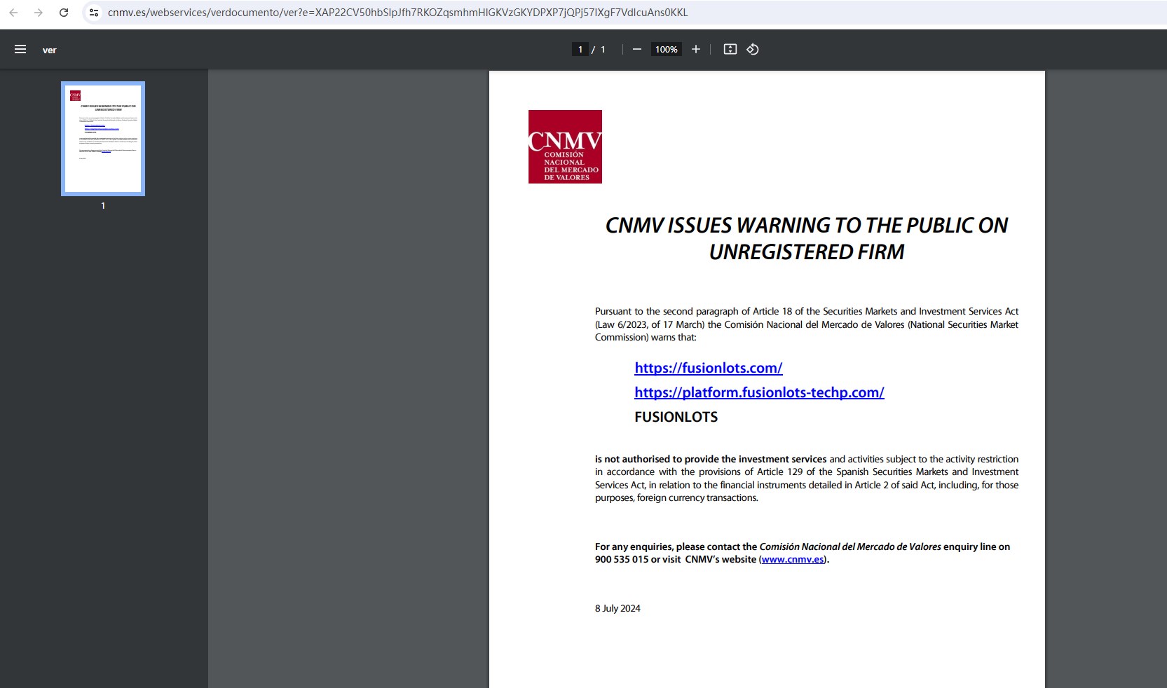 And the Comisión Nacional del Mercado de Valores (CNMV) added FusionLots to its warning list for providing investment services without authorization.
