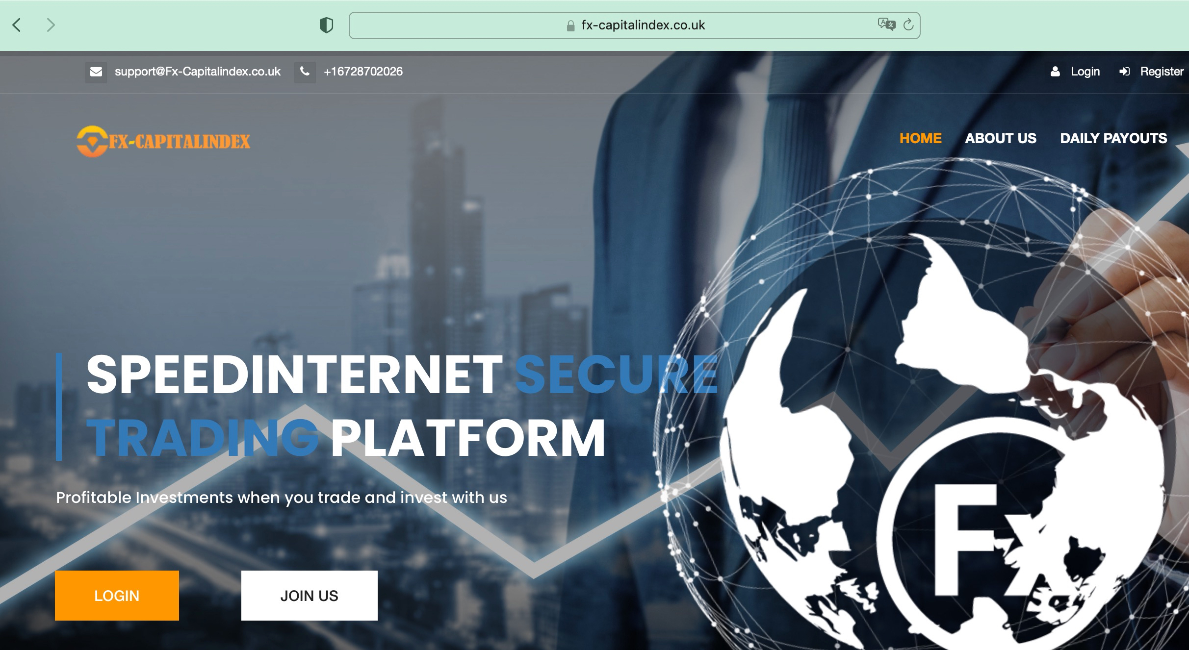 Fx Capitalindex claims to be a reliable company without presenting any information about its regulation.Fx Capitalindex locates in the United States, we searched the National Futures Association (NFA) but found no matching results.The truth is that Fx Capitalindex is not under valid regulation by any regulators to do forex. Investors' funds in this broker are unsafe and cannot be protected by any law.Fx Capitalindex is a scam.