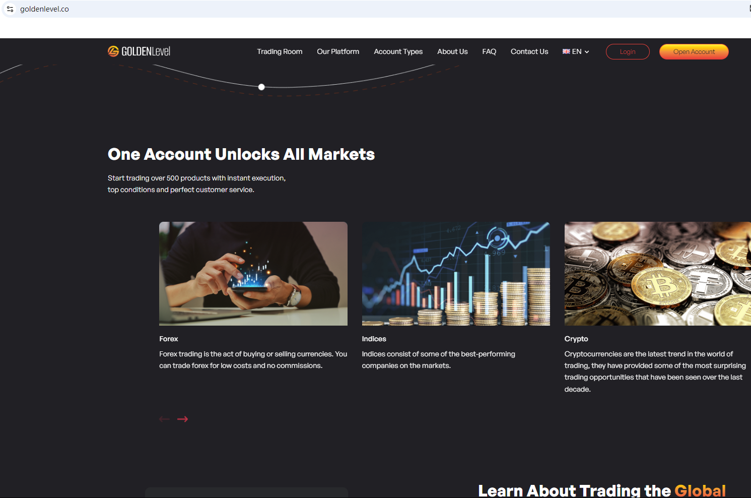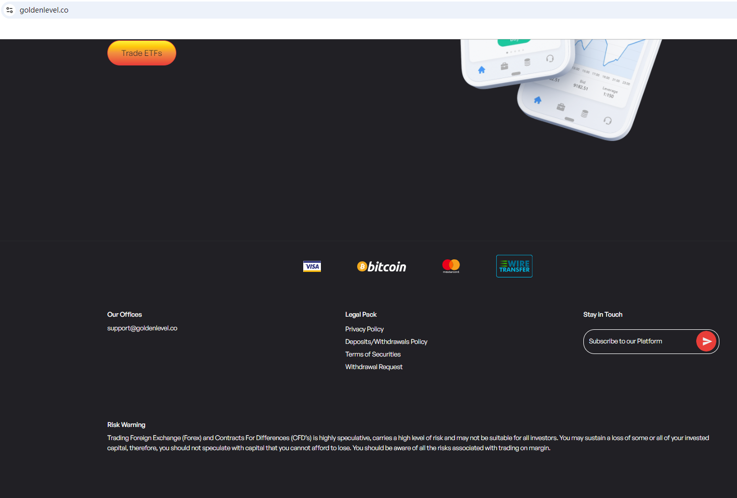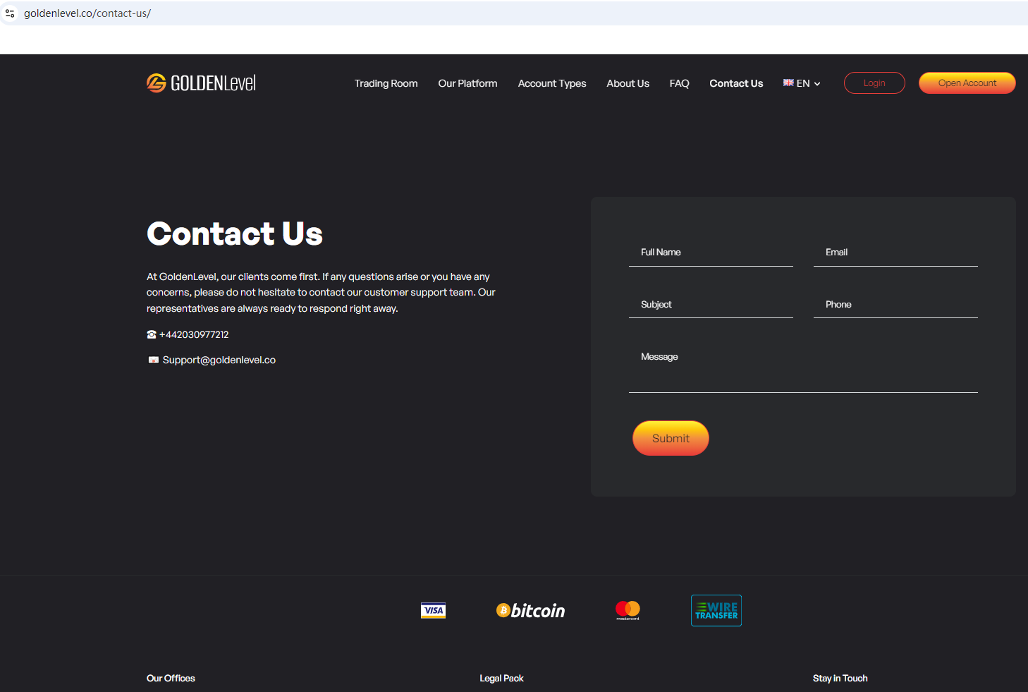 GoldenLevel's website mirrors those of previously flagged fraudulent brokers.The broker lacks valid licensing details to prove its legitimacy and only provides a contact number starting with +44, suggesting it may be based in the UK. However, upon investigation, no matching information was found in the Financial Conduct Authority (FCA).