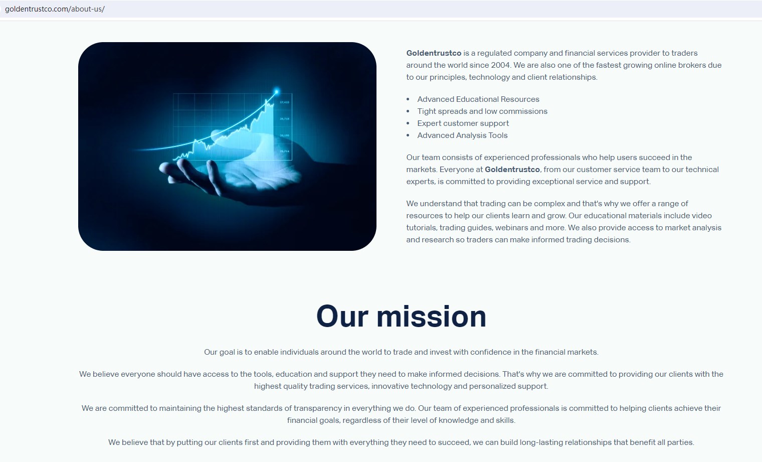 Goldentrustco (GOLDEN TRUST) claims to be a regulated company and financial services provider located in the Saint Vincent and Grenadines, offering wide range of financial services, including Shares, Cryptocurrencies, Indices, Forex, Metals and more instruments in global markets. But there is no detailed financial services licenses and other licensing certificates. A company that offers financial services must have financial license in the country where it is located.We didn't find the business registration of GOLDEN TRUST with the Financial Services Authority in St. Vincent and the Grenadines(SVG FSA) , an offshore authority that doesn't license financial derivative trading brokerage activities.the SVG FSA issued a Warning Notice against GOLDEN TRUST (goldentrustco.com), stating that GOLDEN TRUST Company is not incorporated or regulated in St. Vincent and the Grenadines.The truth is that Goldentrustco is not regulated by any regulators. Letting it hold or control investors' money is unsafe, and the money can not be protected by any laws.Goldentrustco is a scam.