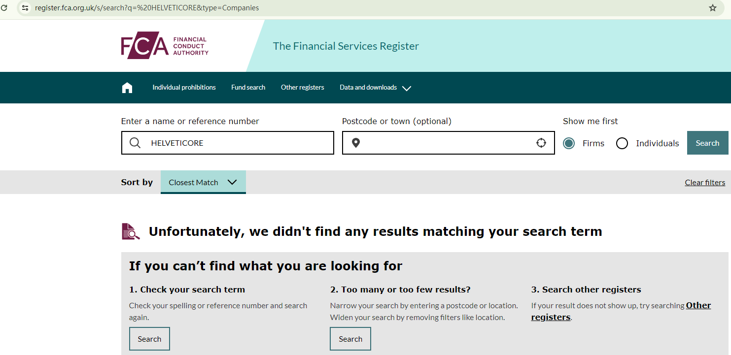 • Jan 15, 2024 BrokersView has reviewed that Helveticore is an unregulated broker