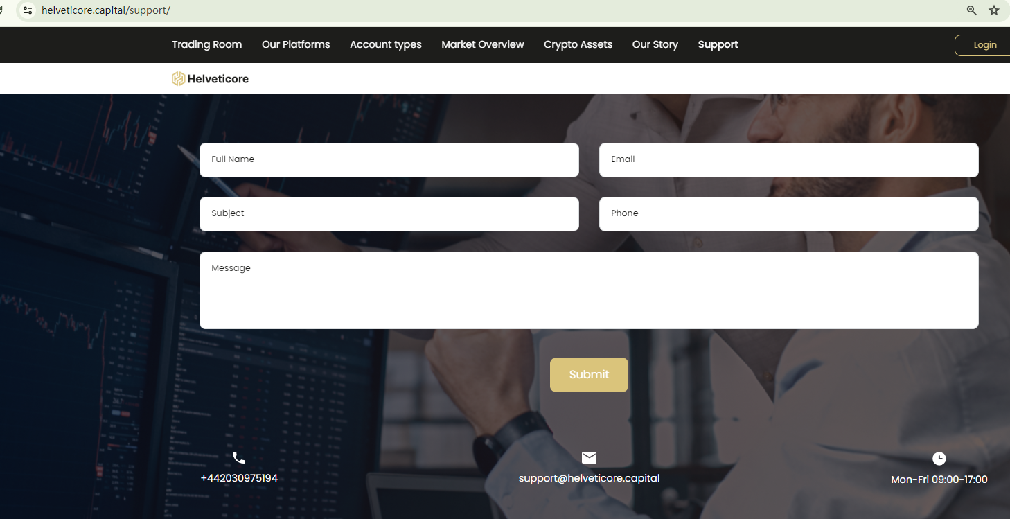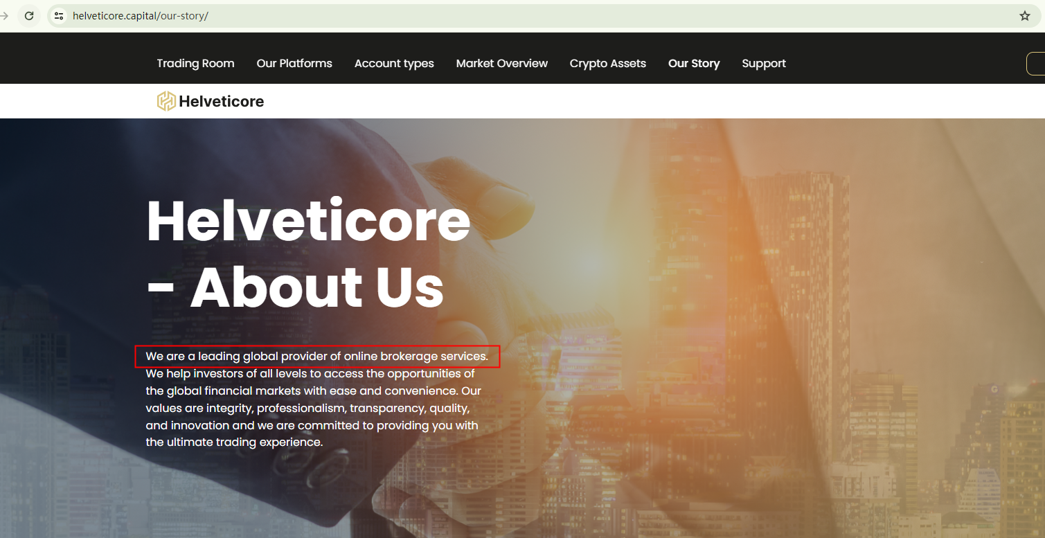 BrokersView found that the domain "https://helveticore.capital/" is currently inaccessible. This is widely regarded as a significant red flag, as the suspension of a broker's website often points to underlying regulatory or operational issues.