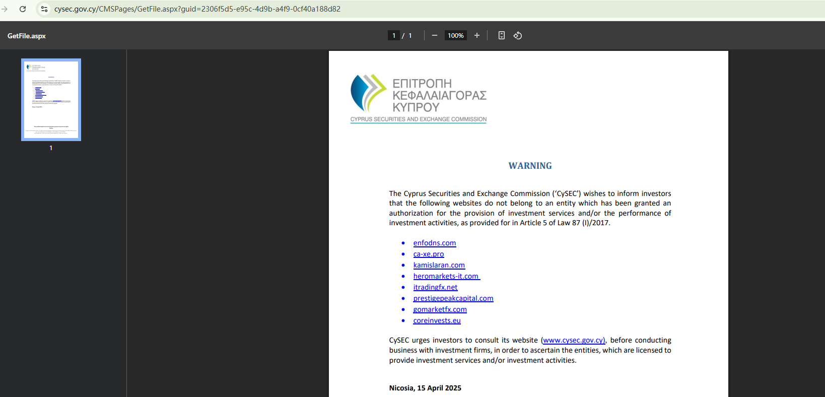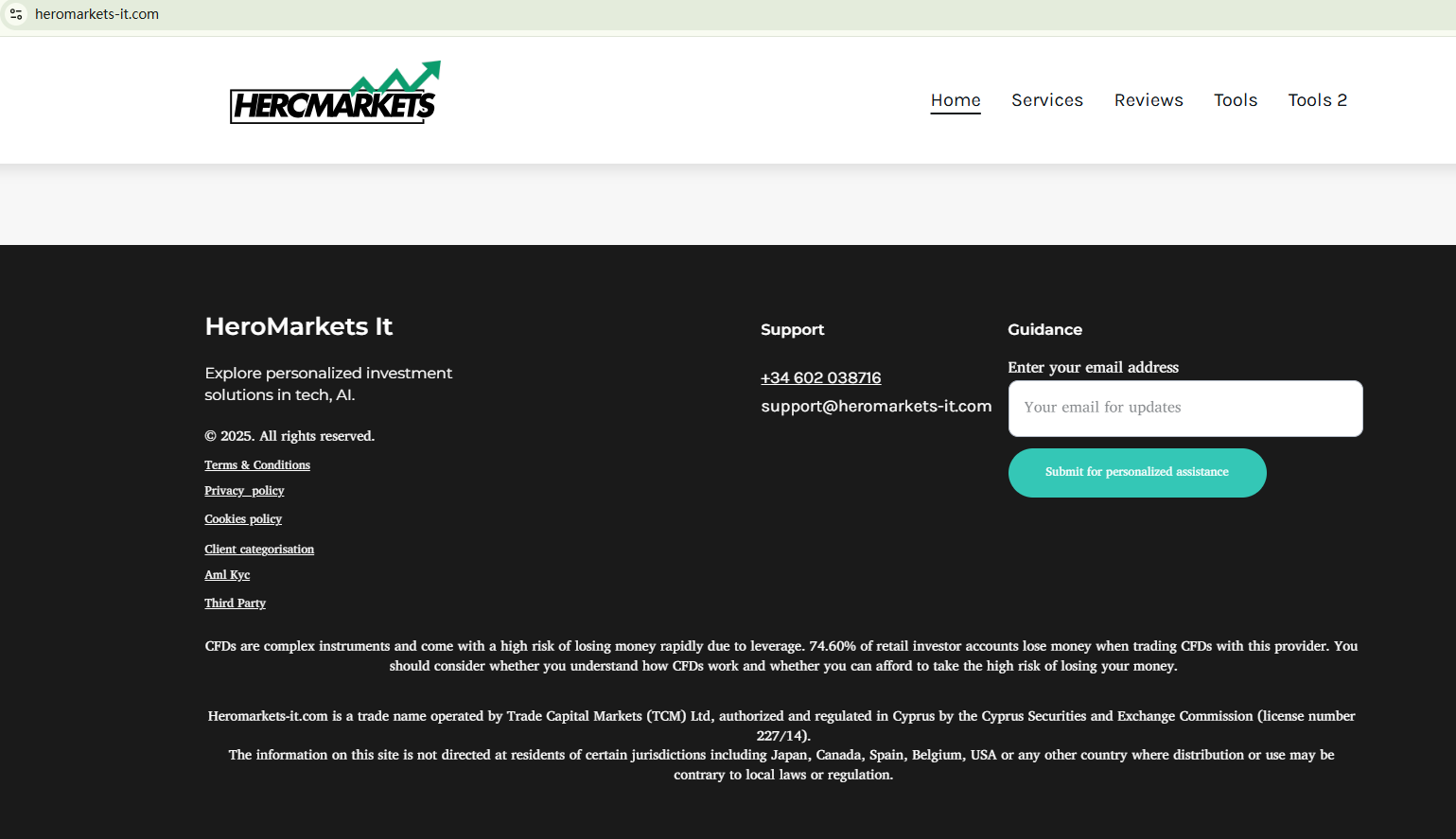 HeroMarkets It claims to be authorized by the Cyprus Securities and Exchange commission (CySEC). However, the fact is that the CySEC has refuted that claim by adding HeroMarkets It to its warning list. According to the authority's warning, HeroMarkets It is not authorized by them.