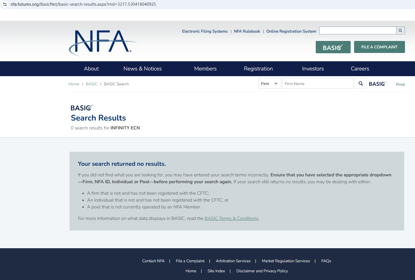 In essence, INFINITY ECN is not regulated by any governing body. Entrusting this broker with investors' funds is highly risky, as no legal protections are in place to safeguard the funds.