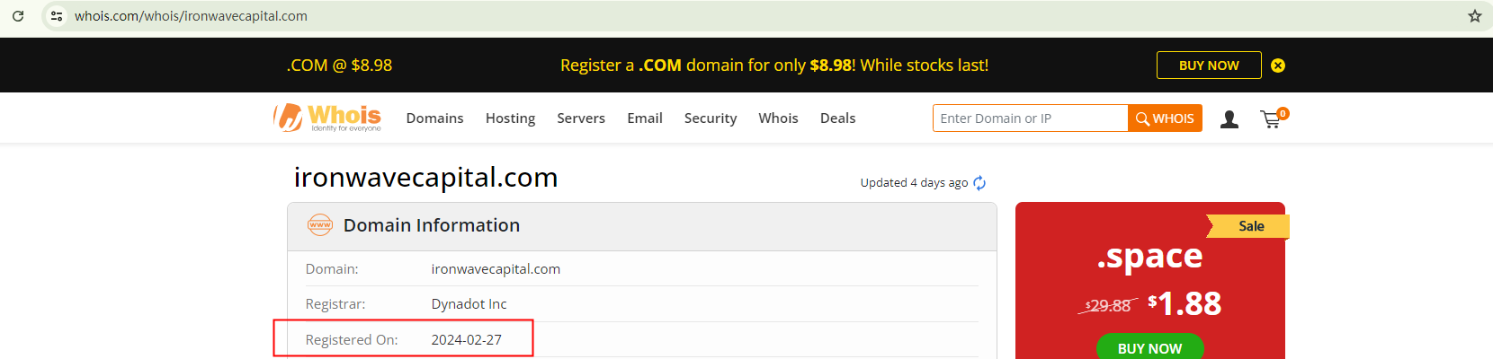 Additionally, the domain name ironwavecapital.com was registered as recently as late February 2024. This suggests that it's a relatively new platform under this domain, which contradicts their claims of having over 3.8 million users. This discrepancy raises a red flag.