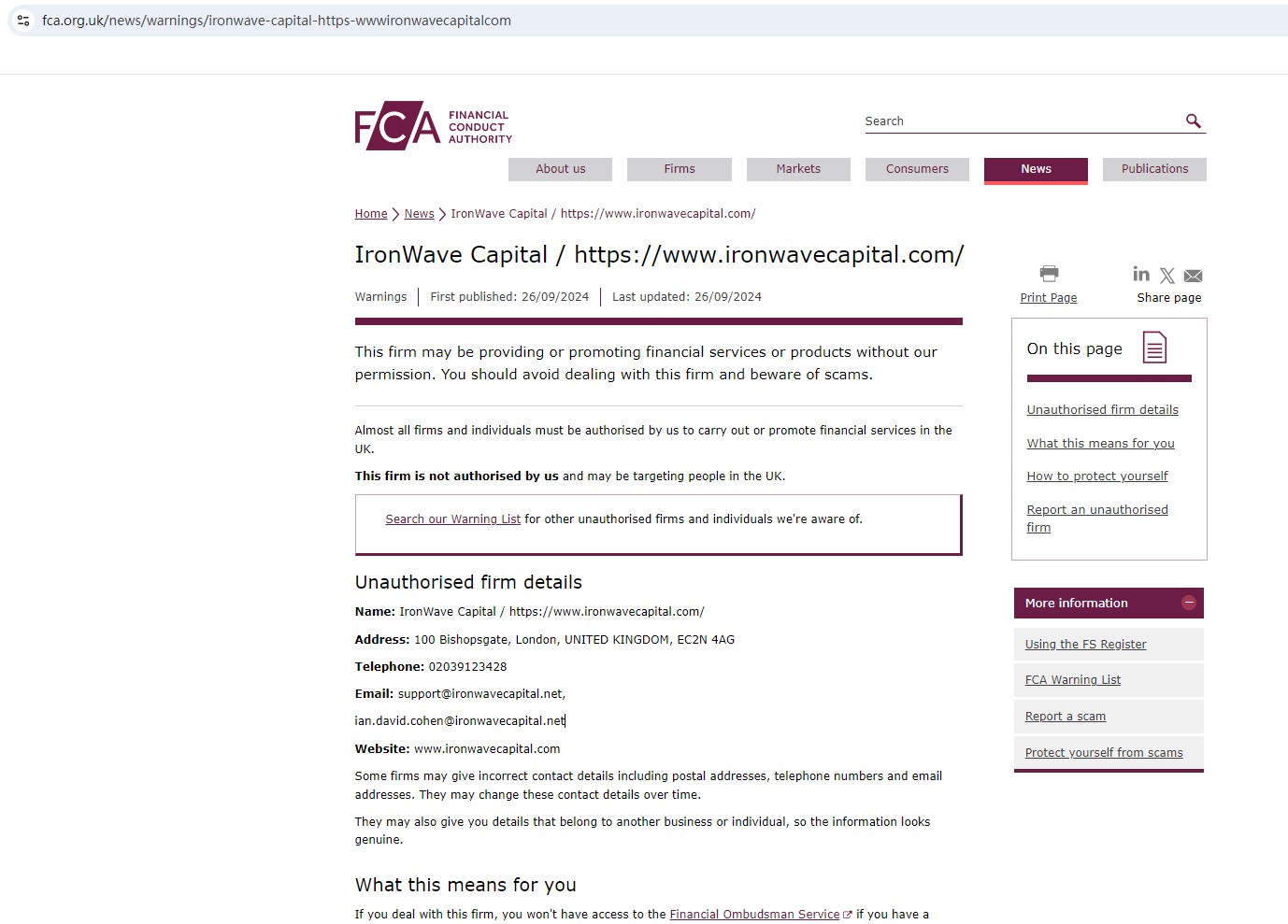 Ironwave Capital appears to be a scam.