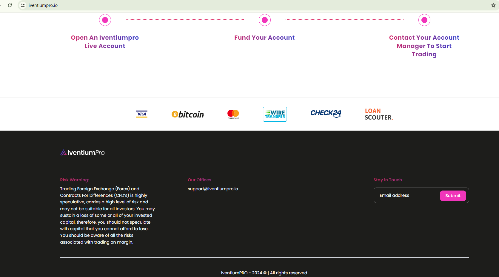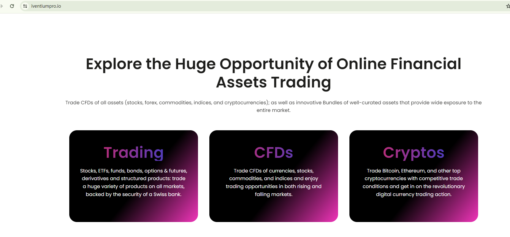 IventiumPRO claims to be a reliable broker yet lacks transparency, without disclosing its legal forms. What's more, it fails to provide any regulatory information to verify its legitimacy.