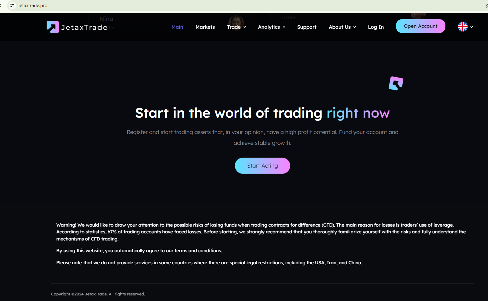 JetaxTrade appears to be a scam.