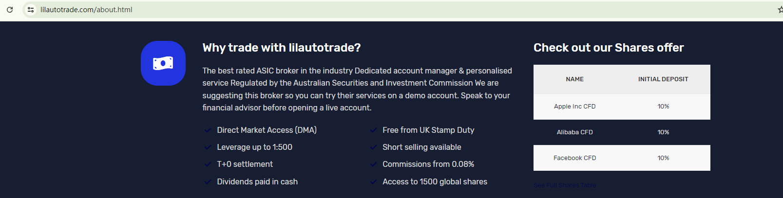 In essence, LILAUTO TRADE is not regulated by any governing body. Entrusting it with investors' funds is highly risky, as there are no legal protections in place to safeguard the funds.