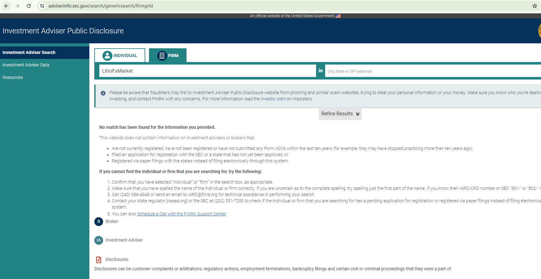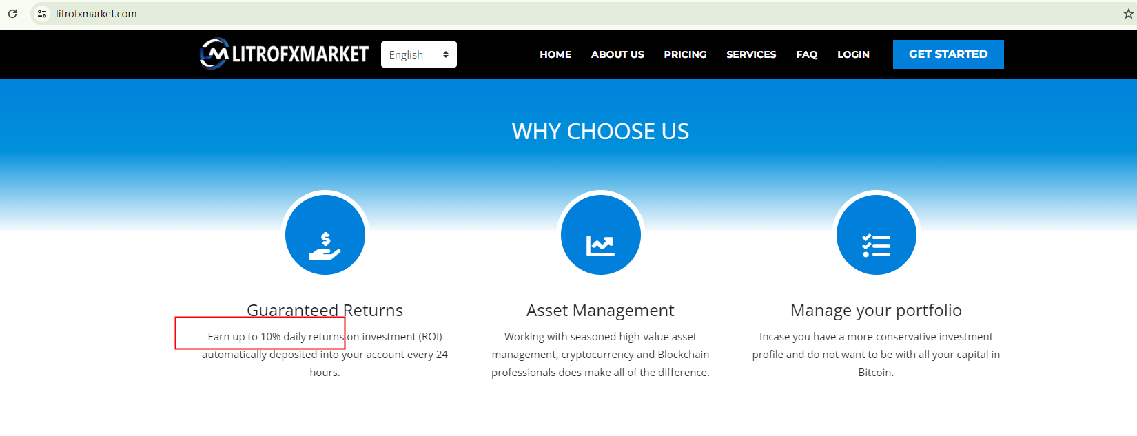 LitroFxMarket purports to have been established in 2016, yet its domain name was only registered in June 2022. This inconsistency casts doubt on its credibility.On its homepage, the company promises a Return on Investment (ROI) of up to 10%, a claim that could be seen as a red flag. Generally, investment activities inherently carry substantial risks due to market volatility and liquidity. The potential earnings in the market largely depend on the investors' knowledge and trading skills. While a trading platform can create a transparent trading environment, offer bonuses, or provide trading tools to facilitate trading, it's nearly impossible to guarantee profits. If a trading platform makes such promises, investors should be immediately alarmed as it may be a ploy to ensnare them.Furthermore, this trading platform claims to be domiciled in the US. However, there are no indications that it is registered with the Securities and Exchange Commission (SEC) or the National Futures Association (NFA). This suggests that it is operating in the US without the necessary licenses.In essence, LitroFxMarket is not regulated by any governing body. Entrusting it with investors' funds is highly risky, as there are no legal protections in place to safeguard the funds.LitroFxMarket appears to be a scam.