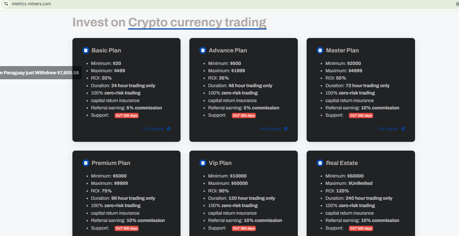 In essence, METRICS MINERS is not regulated by any governing body. Entrusting it with investors' funds is highly risky, as there are no legal protections in place to safeguard the funds.