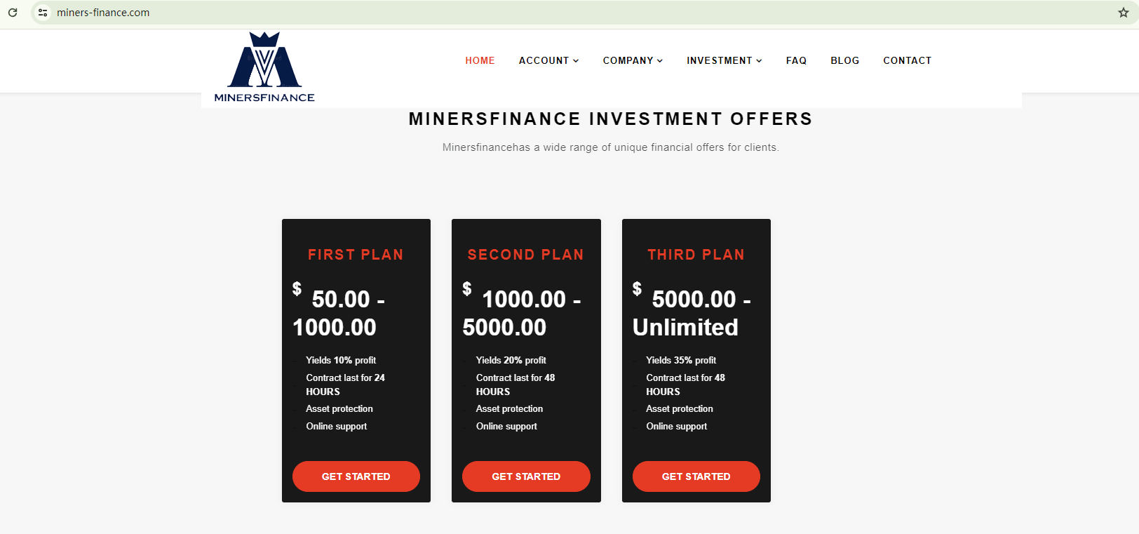In essence, MINERSFINANCE is not regulated by any governing body. Entrusting it with investors' funds is highly risky, as there are no legal protections in place to safeguard the funds.