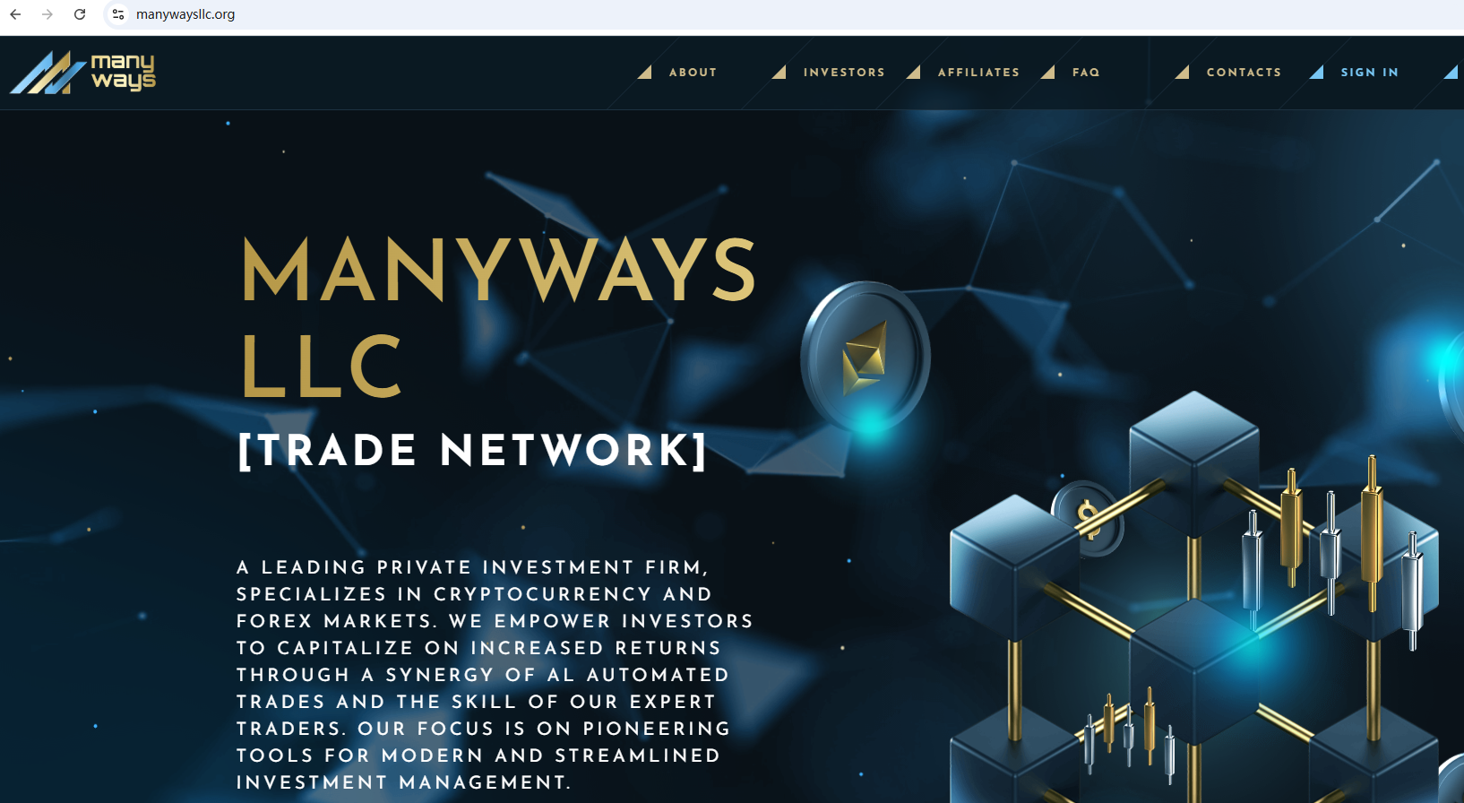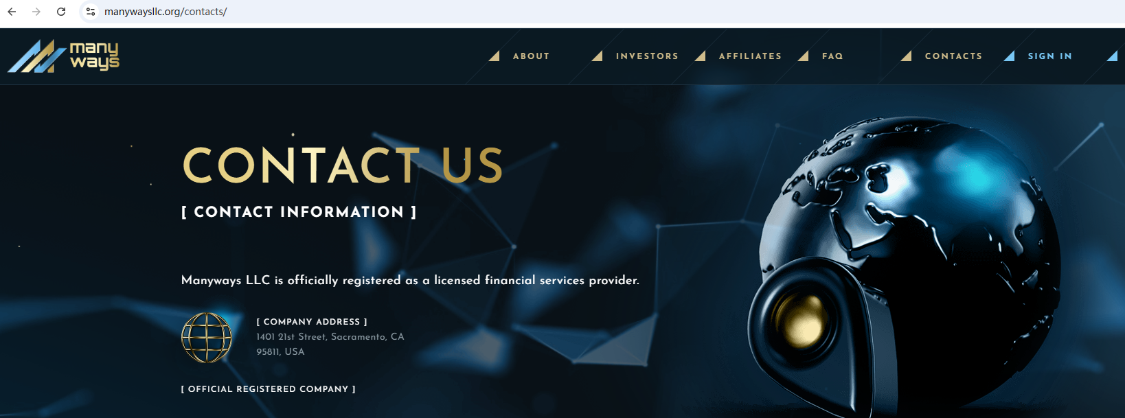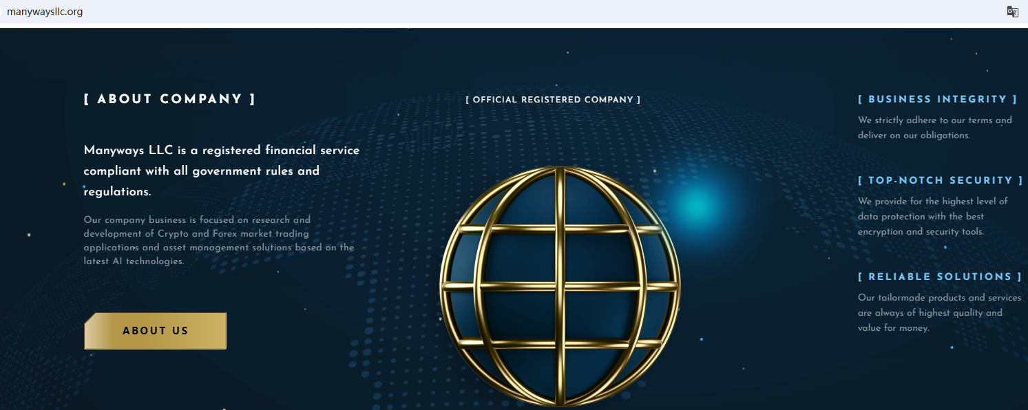 Manyways LLC claims to be a private investment firm with all government rules and regulations, located in the USA, specializes in cryptocurrency and Forex markets. But it lacks detailed regulatory information. A company that offers financial services must have financial license in the country where it is located.