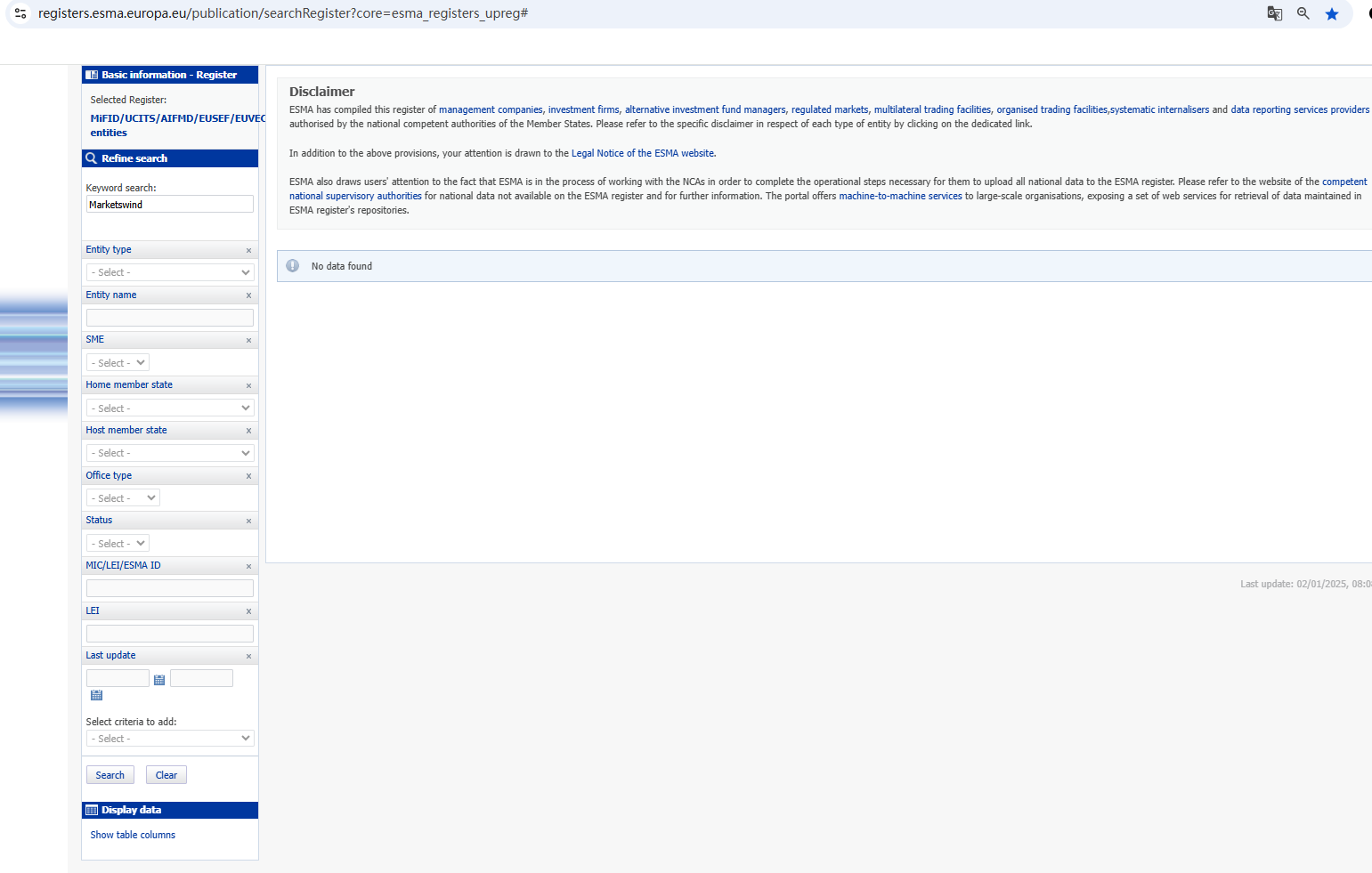 In addition, the Financial Conduct Authority (FCA) issued a warning against Marketswind, believing this company might be providing financial services or products without proper authorization in the UK.
