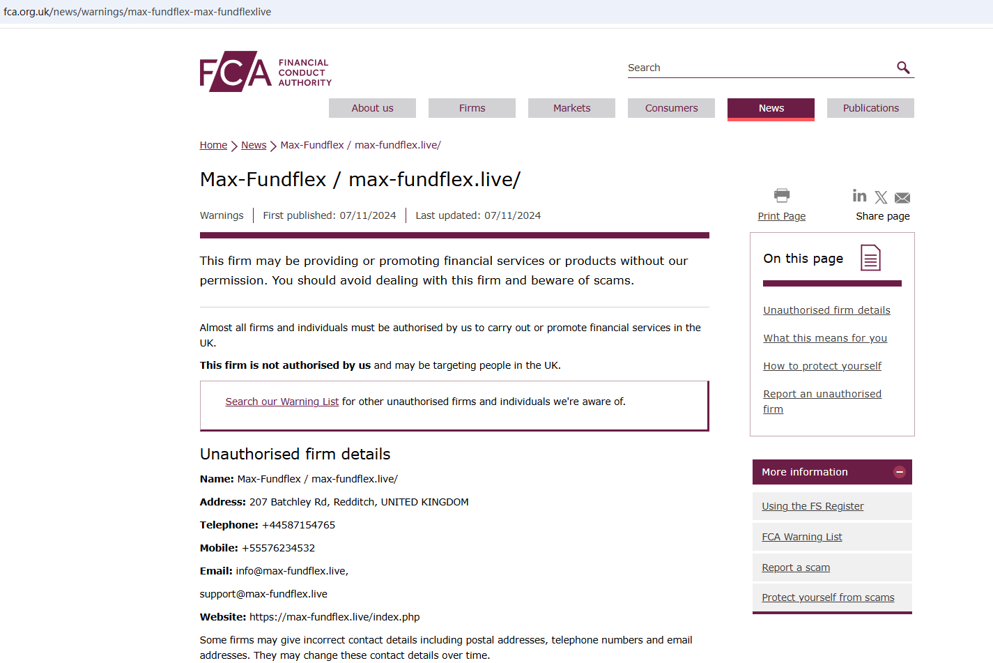 Upon investigation, we found that Max-FundFlex is not authorized and regulated by the United Kingdom Financial Conduct Authority (FCA). And the United Kingdom Financial Conduct Authority (FCA) issued a warning against Max-Fundflex, believing this company might be providing financial services or products without authorisation in the UK.
