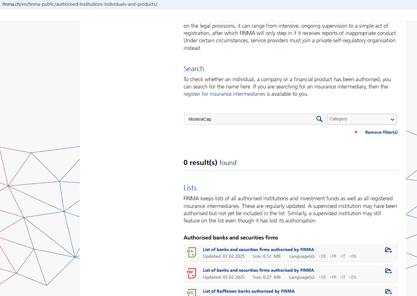 In addition, the Comisión Nacional del Mercado de Valores (CNMV) added MoneraCap to its warning list for providing investment services without authorization.