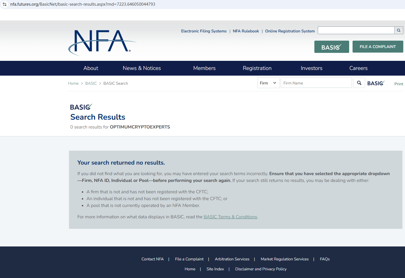 In essence, OPTIMUMCRYPTOEXPERTS is not regulated by any governing body. Entrusting it with investors' funds is highly risky, as there are no legal protections in place to safeguard the funds.