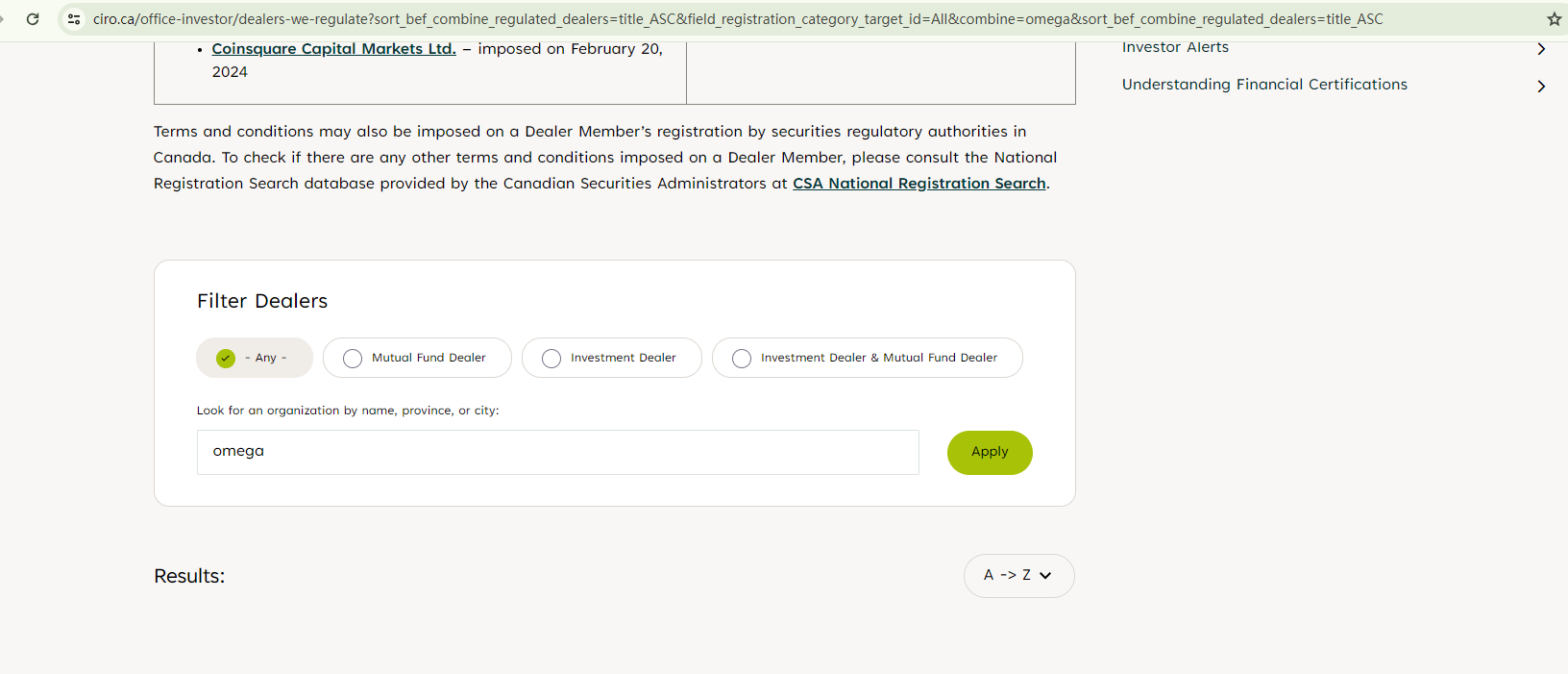 Omega Capital Markets displays registration information at the bottom of its homepage, claiming to be registered with relevant financial regulators in both Australia and Canada. However, the Australian Securities and Investments Commission (ASIC) has already issued a warning about Omega Capital Markets, identifying it as an imposter that misuses the information of the registered entity, OMEGA CAPITAL PTY LTD. As for its Canadian registration, there are no corresponding records from the Investment Industry Regulatory Organization of Canada (IIROC) to suggest its legitimacy and authenticity.
