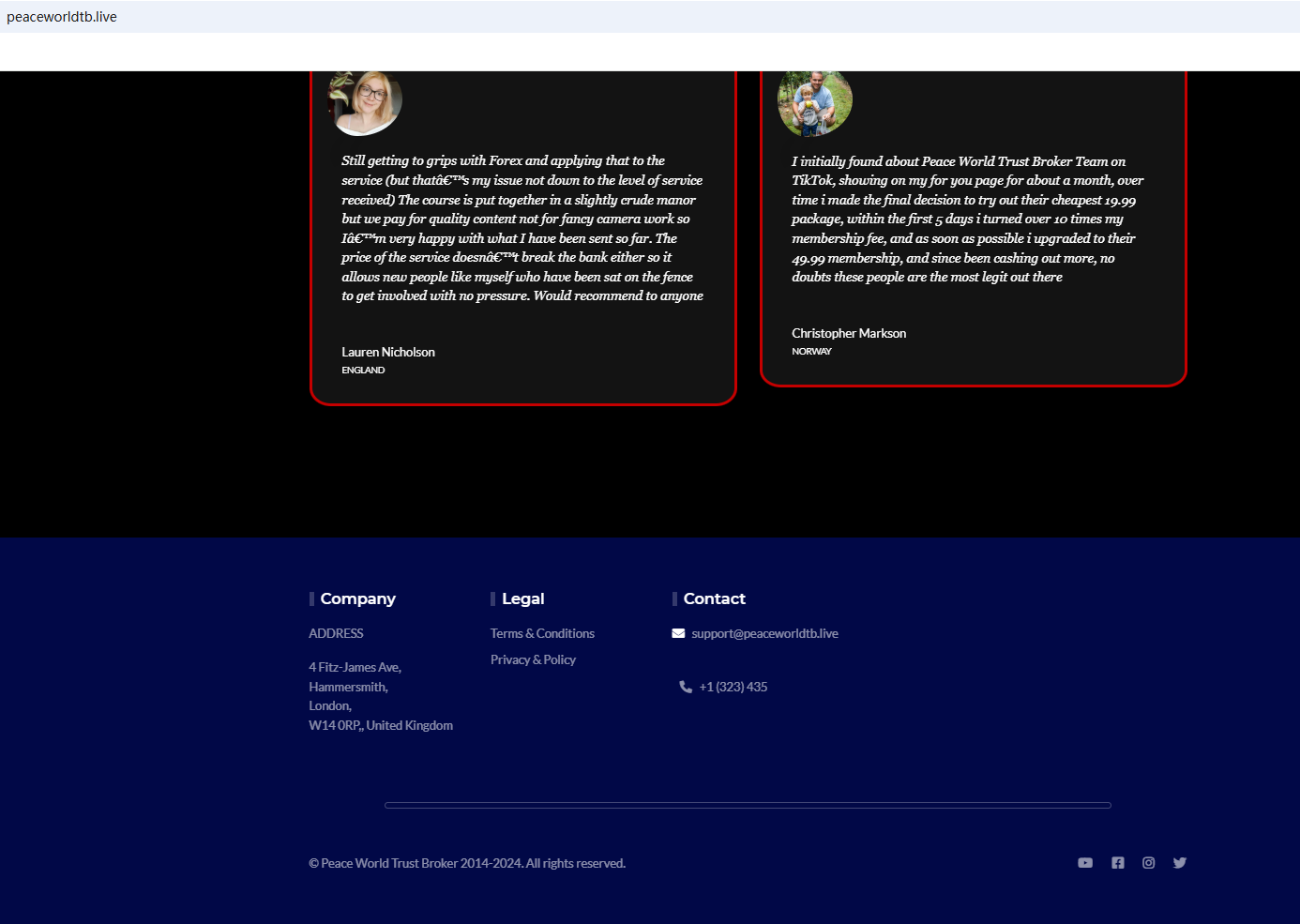 PEACE WORLD TRUST BROKER appears to be a scam.