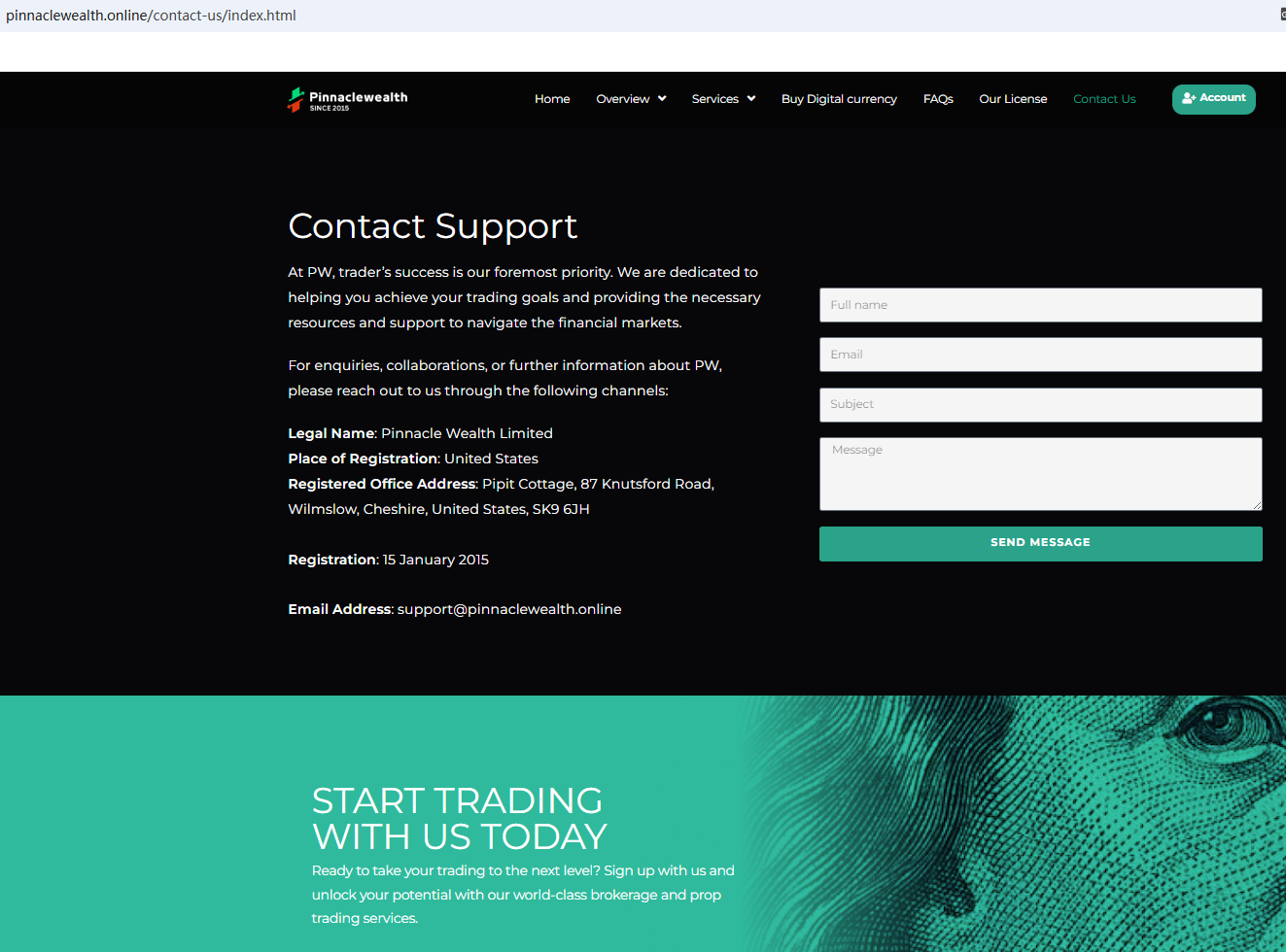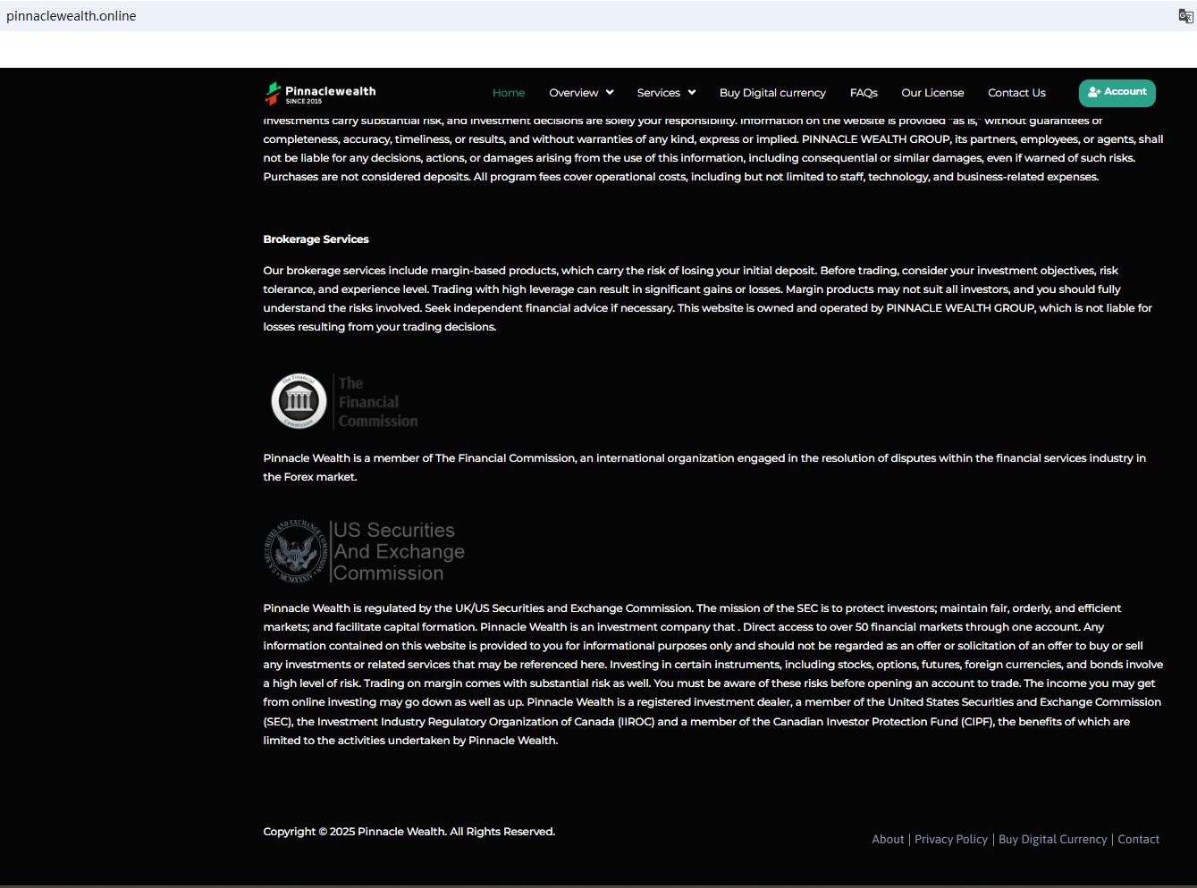 In addition, the Financial Conduct Authority (FCA) issued a warning against Pinnacle Wealth, believing this company might be providing financial services or products without proper authorization in the UK.