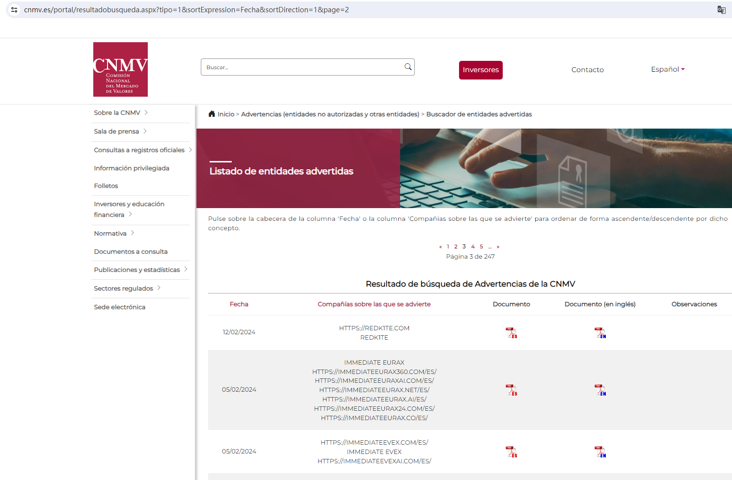 On 12 February 2024, the Comisión Nacional del Mercado de Valores (CNMV) issued a warning that