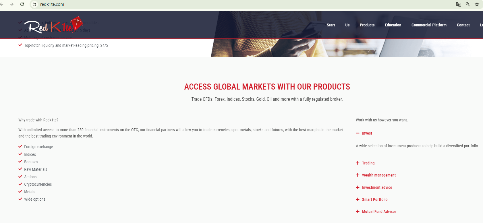 BrokersView found that the domain "https://redk1te.com/" is currently inaccessible. This is widely regarded as a significant red flag, as the suspension of a broker's website often points to underlying regulatory or operational issues.