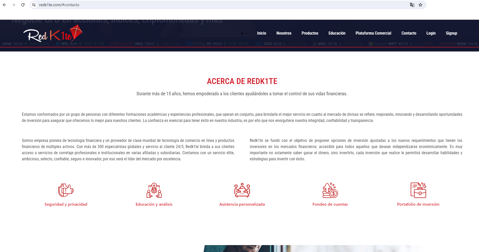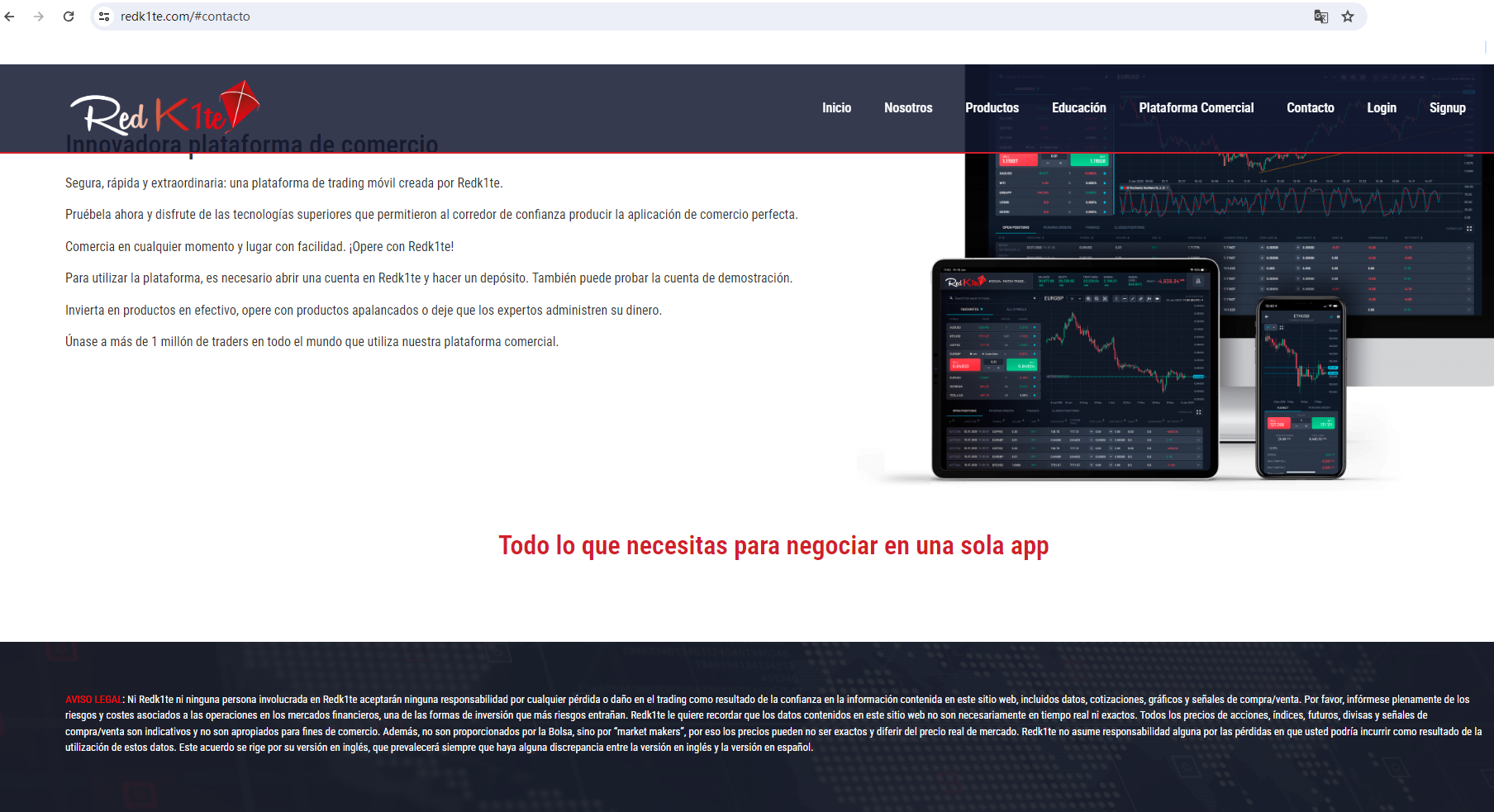 REDK1TE claims to be a reliable company without presenting any information about its regulation or contact. The lack of such important information may be a distinct signal of an unlicensed broker, as regulated companies always present their accreditations and licenses in a prominent position. It is a red flag. The Comisión Nacional del Mercado de Valores (CNMV) issued a warning that REDK1TE was providing financial services or products without authorisation.The truth is that REDK1TE is not regulated by any regulators. Letting it hold or control investors' money is unsafe, and the money can not be protected by any laws.REDK1TE is a scam.