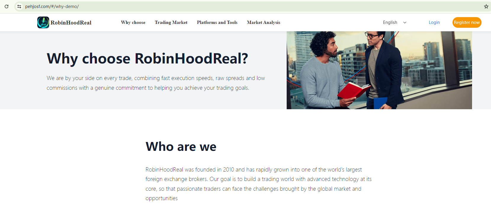 Despite its attempts to build a reputation through exaggerated language, RobinHoodReal is an unregulated broker. BrokersView has noticed that RobinHoodReal shares the same registration information, regulatory statements, and company profile with the suspicious broker, BMVSG. This suggests that RobinHoodReal is likely fraudulent as well.
