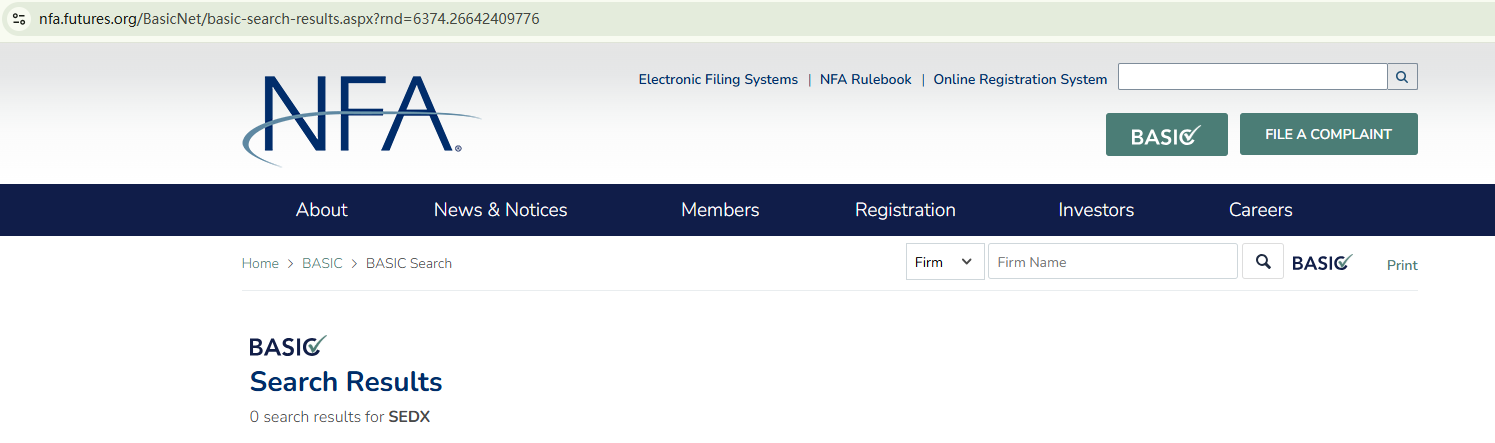 The domain name of SEDX was recently registered in October 2024. We haven't found any useful information on its website to prove its legitimacy and compliance. It only claims to be domiciled in the US, but our investigation suggests that it is not registered with the National Futures Association (NFA). What's more, the New Zealand Financial Markets Authority (NZ FMA) has issued a warning, flagging SEDX as a fraudulent website.