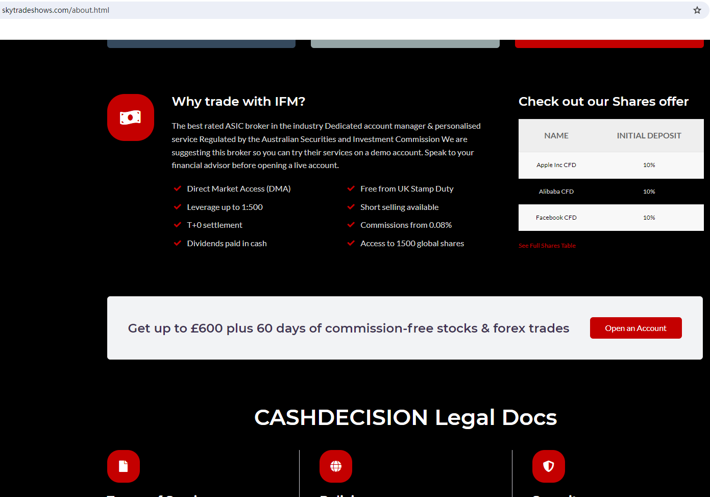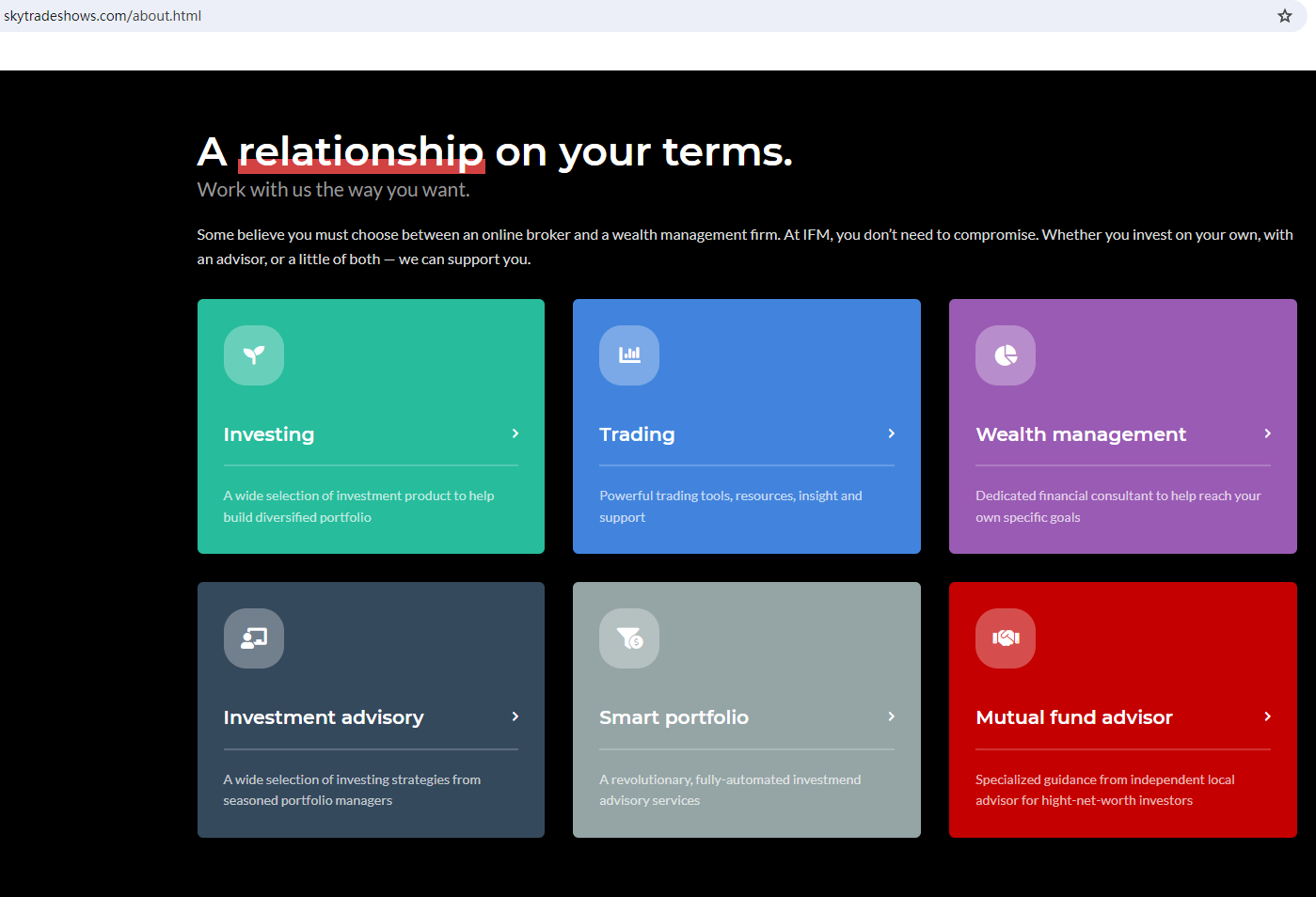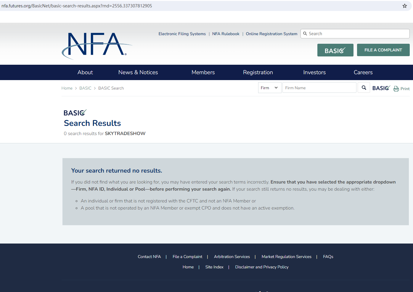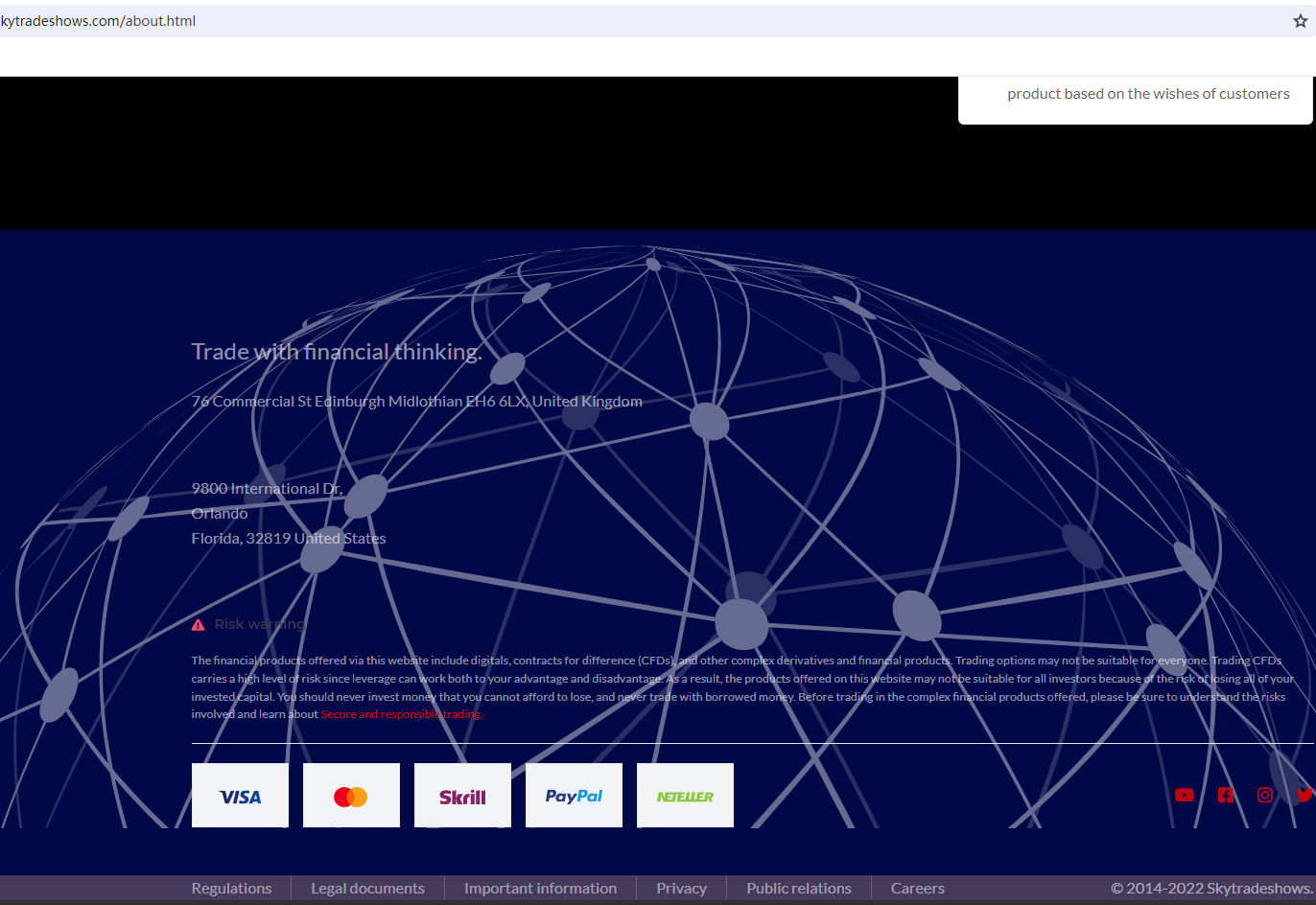 According to its website, we can find that this scam website uses a website template commonly used by fake traders. This template comes with fixed content and icon design. However, this careless scammer did not seriously replace the content involving the dealer's name with his own brand name, which further proves that this website was probably built in a hurry to deal with and attract unsuspecting investors.It claims to have two office addresses. One is in the UK and the other is in the USA. Upon investigation, there is no matching information was found in the National Futures Association (NFA).In addition, the United Kingdom Financial Conduct Authority (UK FCA) issued a warning that SKYTRADESHOW was providing financial services or products in the UK without authorisation.The truth is that SKYTRADESHOW is not regulated by any regulators. Letting it hold or control investors' money is unsafe, and the money can not be protected by any laws.SKYTRADESHOW is a scam.
