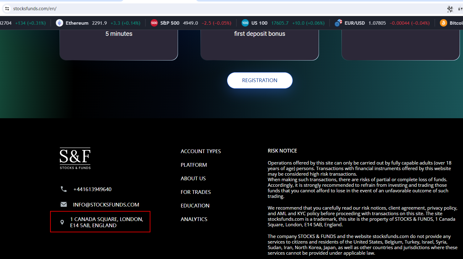 STOCKS FUNDS claims to be a reliable company without presenting any information about its regulation.
