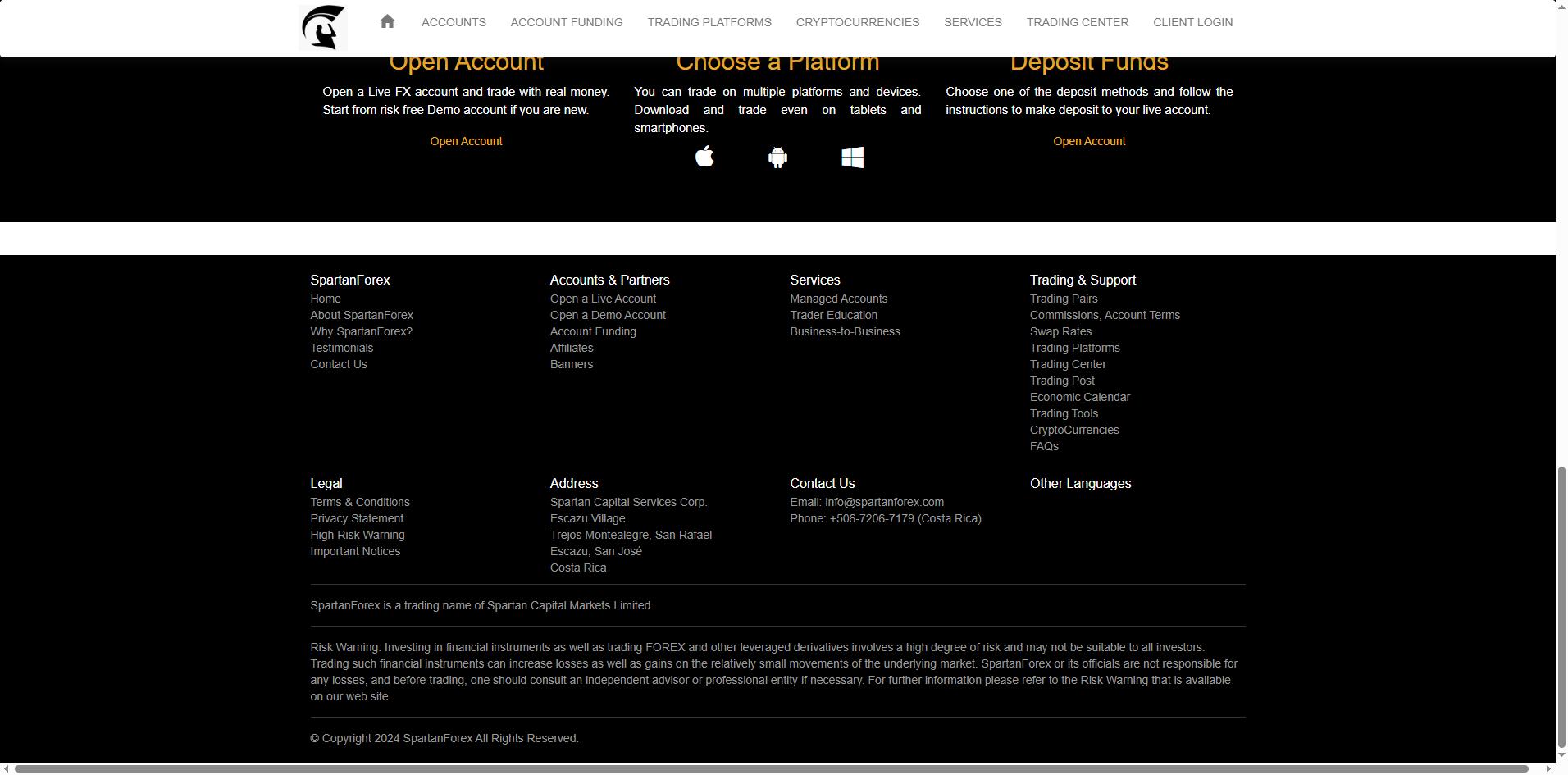 SpartanForex's website provides no regulatory disclosures or trading license information. In our past reviews, SpartanForex claimed to operate as a trading name of Spartan Capital Markets Limited, registered in Saint Vincent and the Grenadines. However, we’ve now found that this registration with the Financial Services Authority (FSA) of SVG has been cancelled, raising serious doubts about the company’s legitimacy, and suggesting it may be changing its registration status to avoid scrutiny.