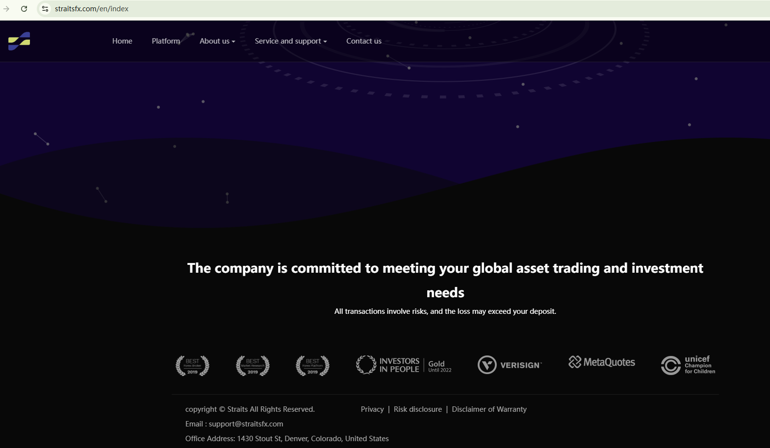 The domain name of Straits was registered in October 2024, making it a relatively new website. We haven't found any useful information to suggest that Straits is a registered or regulated broker. The alleged address "1430 Stout St, Denver, Colorado, United States" may not be its true location, as our research has found that several fraudulent investment websites also claim to be located there. Additionally, the New Zealand Financial Markets Authority (NZ FMA) has added Straits to its warning list.